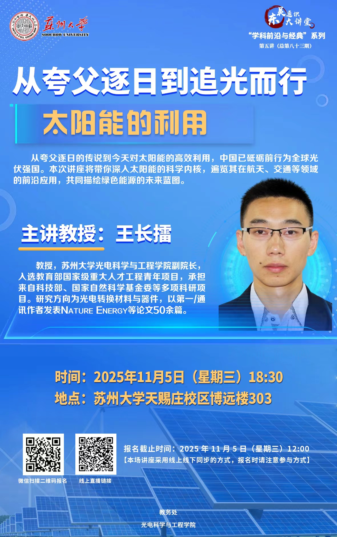 东吴通识大讲堂“学科前沿与经典”系列 第五讲:从夸父逐日到追光而行——太阳能的利用(总第八十三期)