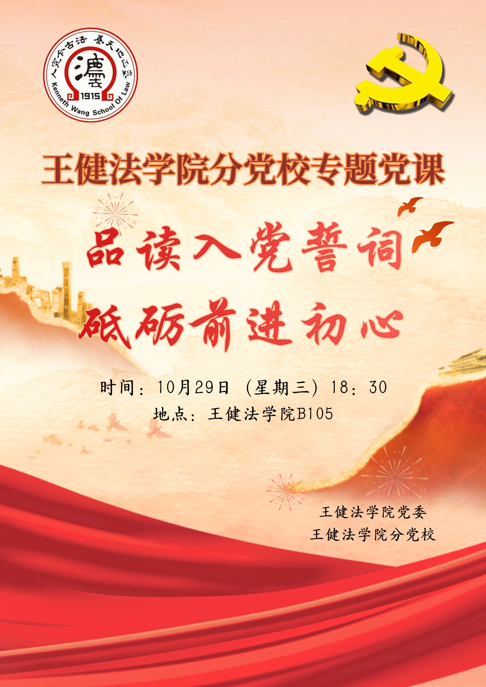 王健法学院分党校专题党课——品读入党誓词 砥砺前进初心