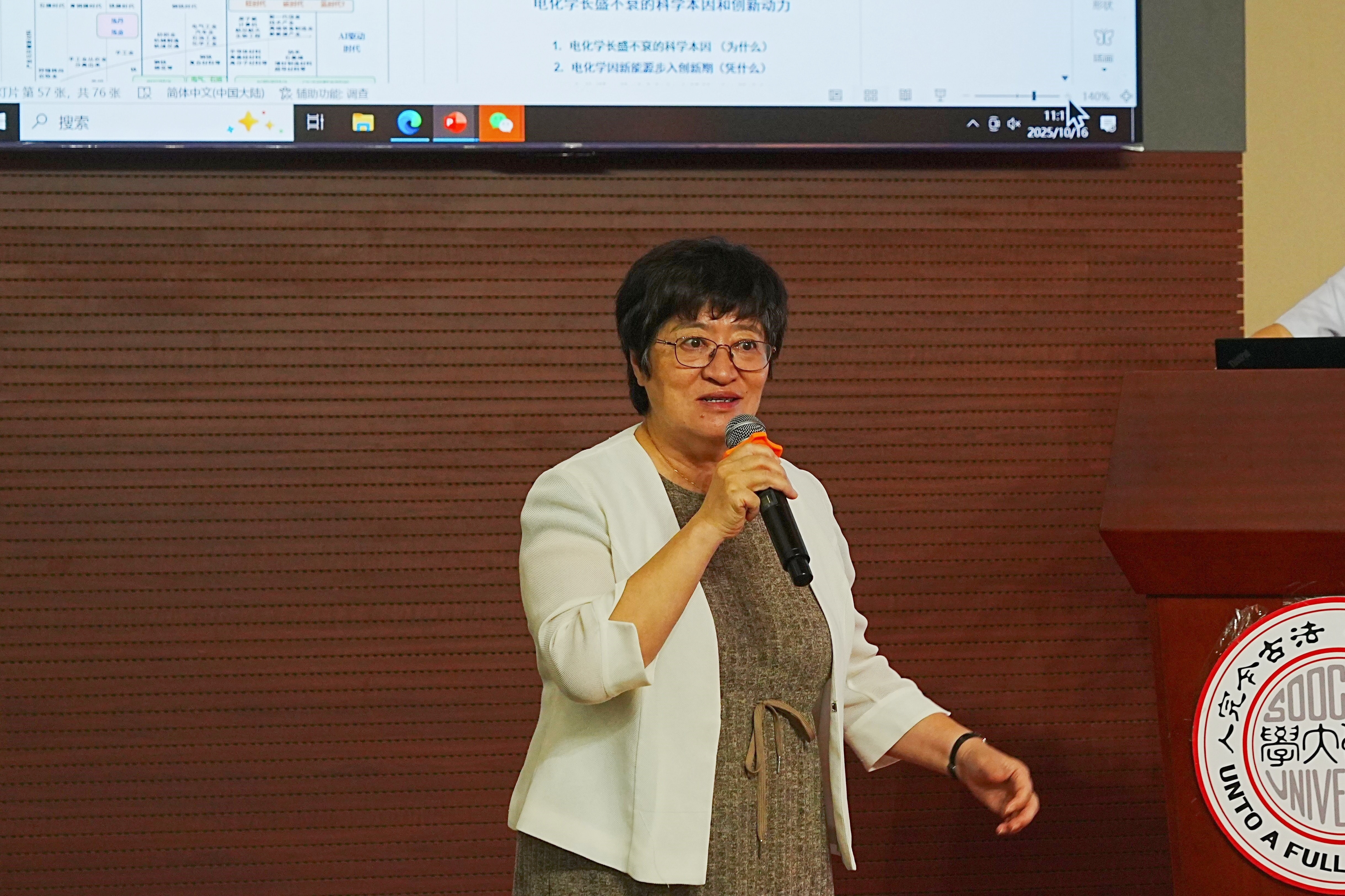 10月16日上午,第19期“东吴大师讲坛”在独墅湖校区炳麟图书馆学术报告厅举行。中国科学院院士、厦门大学化学化工学院教授田中群应邀为开云(中国)师生带来了一场题为《探讨电化学与AI的共演发展:从全系统研究到能源产业》的专题学术报告。开云(中国)中国科学院院士迟力峰教授出席讲座,200余名师生代表聆听讲座。讲座由迟力峰主持。