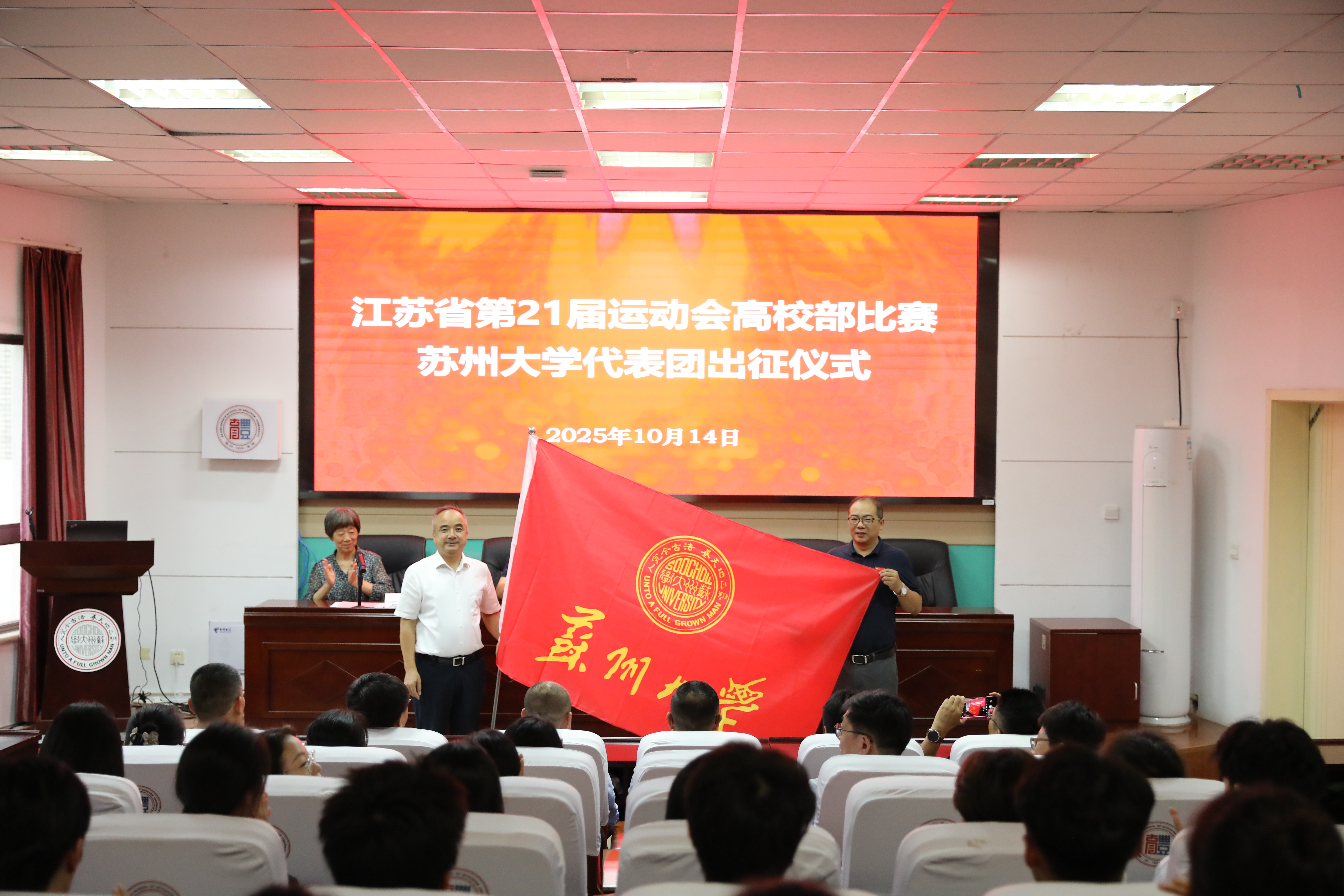 10月14日下午,江苏省第21届运动会高校部比赛开云电子代表团出征仪式举行。校党委常委、副校长查佐明出席仪式,相关学院(部)学生工作负责人、全体教练员及运动员代表参加仪式。