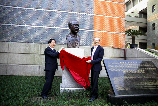 揭幕仪式由田晓明主持。他向在场嘉宾简要介绍了王健先生铜像的落成过程。随后,王卓君书记与王嘉廉先生共同为王健先生铜像揭幕。
