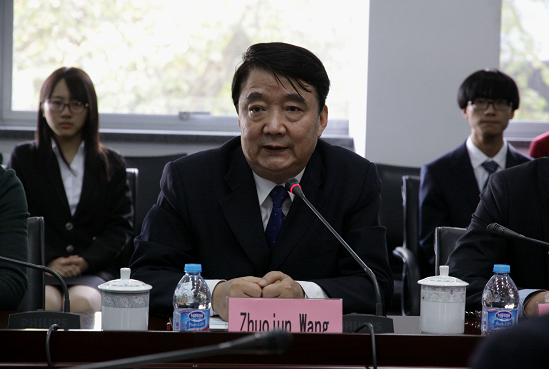 王健法学院院长胡玉鸿从教师风采、学生风采、科研获奖、人才引进、大型活动、境外交流合作、学术活动、平台共建等方面对王健法学院2016年的工作情况作了简要汇报。副院长方新军就学院的网络课程建设、法律实例演习课程、双语全英文课程等方面作了详细介绍。