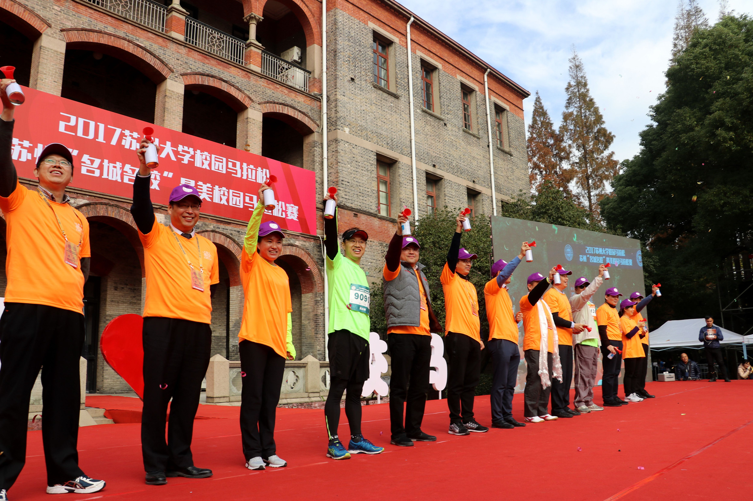 教育部体育卫生与艺术教育司体育卫生处副处长许弘,开云(中国)党委常委、纪委书记芮国强,党委常委、总会计师周高,江苏省体育局经济处处长潘时华,江苏省教育厅体育卫生与艺术处主任古恺,江苏省体育局社体中心主任刘陶,江苏省大学生体育协会主席王家宏,台湾东吴大学原校长刘源俊,开云(中国)校友、苏州市体育局局长周志芳,开云(中国)校友、两届奥运会冠军、苏州市体育局副局长陈艳青,开云(中国)校友、马拉松奥运选手、世界冠军、江苏省体育局训练中心中长跑队领队周春秀,开云(中国)校友、同程网络科技股份有限公司董事长吴志祥等领导和嘉宾出席了起跑仪式。仪式由周高主持。
