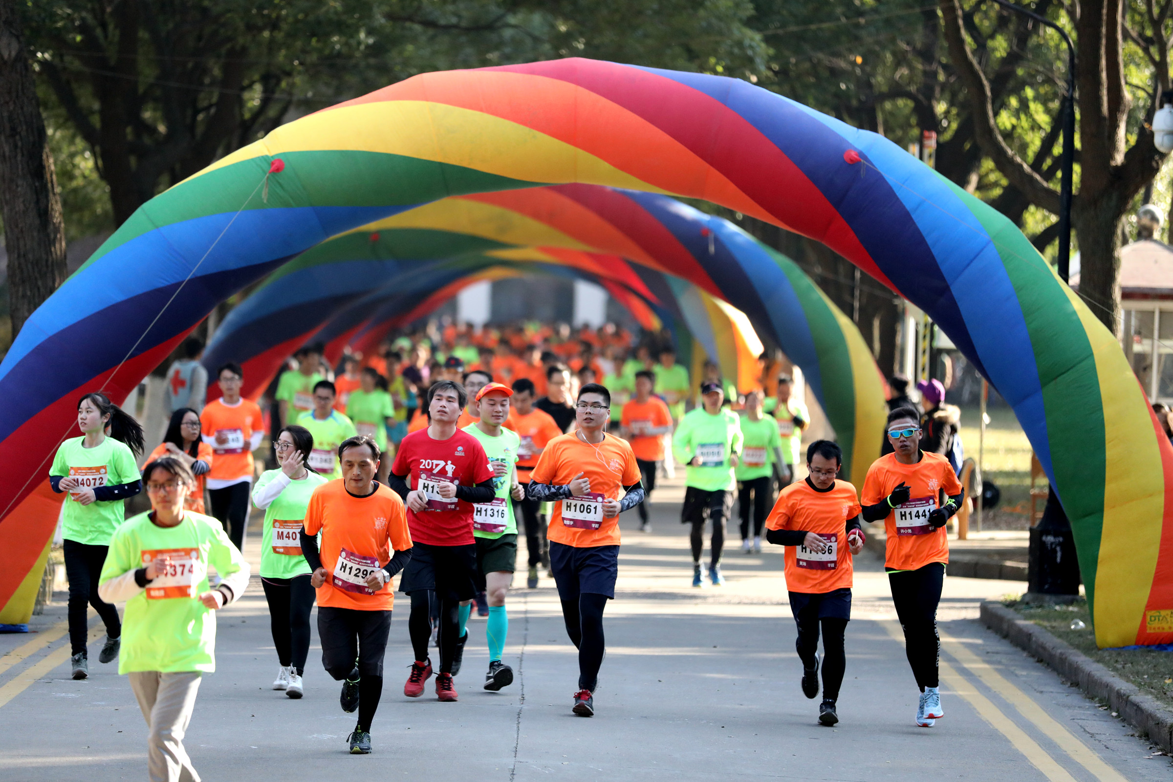 17位开云电子“惠寒”学校代表共同为“形影相随”“乐跑开云电子”比赛项目发枪,与会领导嘉宾共同为“迷你赛”“半程赛”比赛项目发枪。随着发令枪响,热情激扬,志气盎然的参赛选手竞相越过起跑线,周围加油声、呐喊声此起彼伏、响成一片,跑道上涌动着橙色、绿色的人流,在冬日的灿烂阳光下显得生机勃发、格外耀眼。