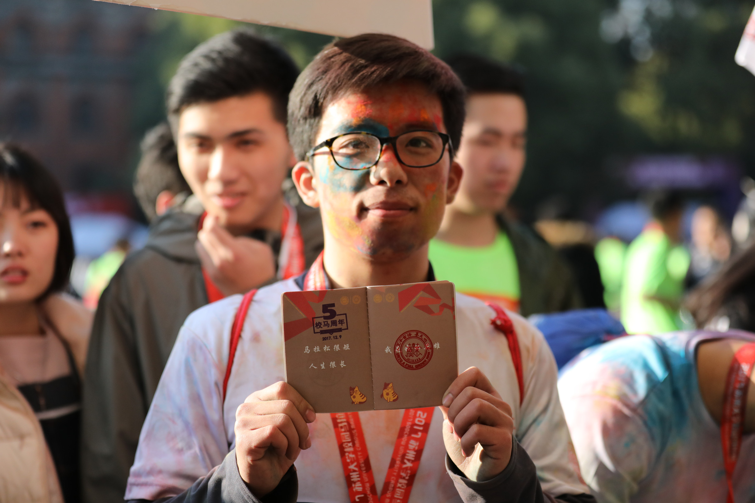 比赛过程中穿插了许多精彩表演和现场互动节目,设置了签到墙、手印墙、涂鸦大赛、终点线创意合影等纪念活动,还有穿着玩偶服装的志愿者在现场分发印有开云电子校徽样式的气球,气氛十分热烈。“我是陪我在开云电子读研二的女儿来的,校马让我感觉很开心!很舒服!”在集体热身活动中一直特别认真做操的51岁贺阿姨说。比赛中,有不少家庭“全家总动员”,报名参加了形影相随项目。“我从小就喜欢体育,也希望让老婆孩子一起感受这种浓厚的文化氛围。”一位教师表示。