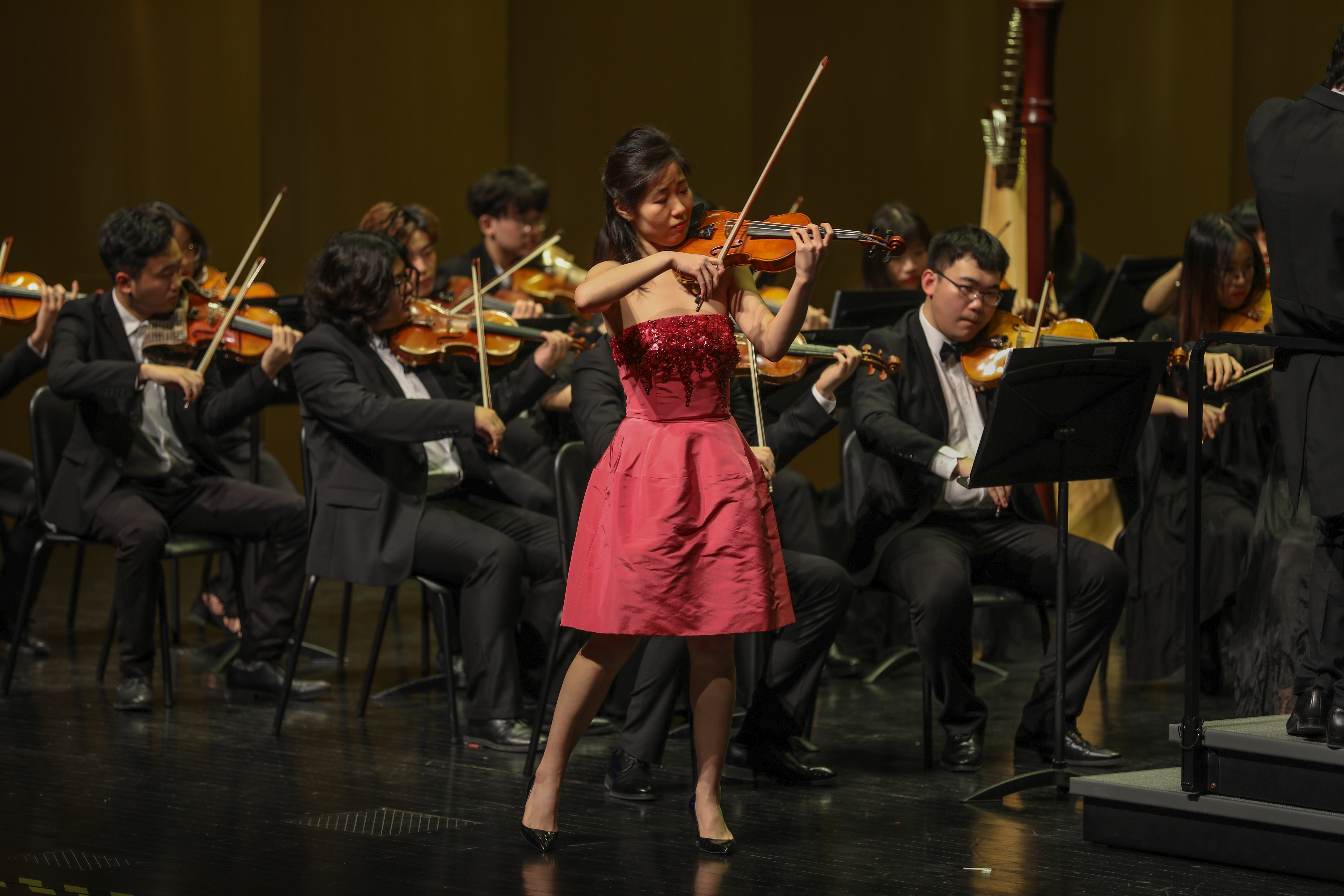 约翰·施特劳斯脍炙人口的《春之声圆舞曲》节奏自由、充满变化,旋律生动而连贯,给观众带来了春的气息;音乐学院青年教师宋歆予与交响乐团合作演奏了经典小提琴曲爱德华·埃尔加的《爱的致意》、马斯内的《沉思》,唯美动人的曲调给观众无限遐想;约翰·施特劳斯经典作品《无穷动谐谑曲》《拨弦波尔卡》节奏轻快、活泼俏皮;德沃夏克的代表作《斯拉夫舞曲》《E小调第九交响曲“自新大陆”第四乐章》让观众们流连忘返。演出结束时,现场观众意犹未尽,乐团在热烈的掌声和欢呼声中两次加演。随着《拉德斯基进行曲》雄壮的旋律和台下观众有节奏的掌声,新年音乐会的气氛达到高潮,圆满谢幕。