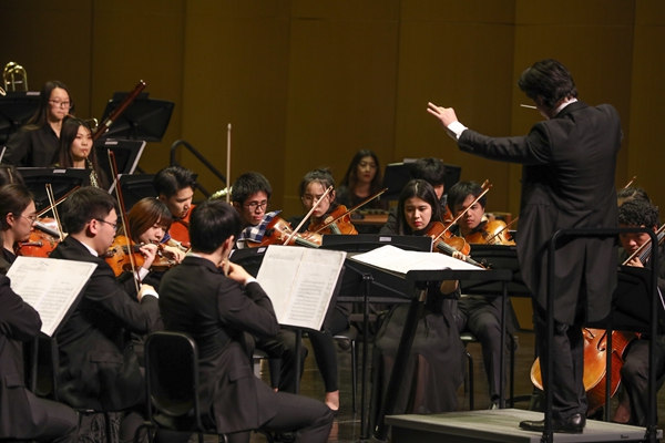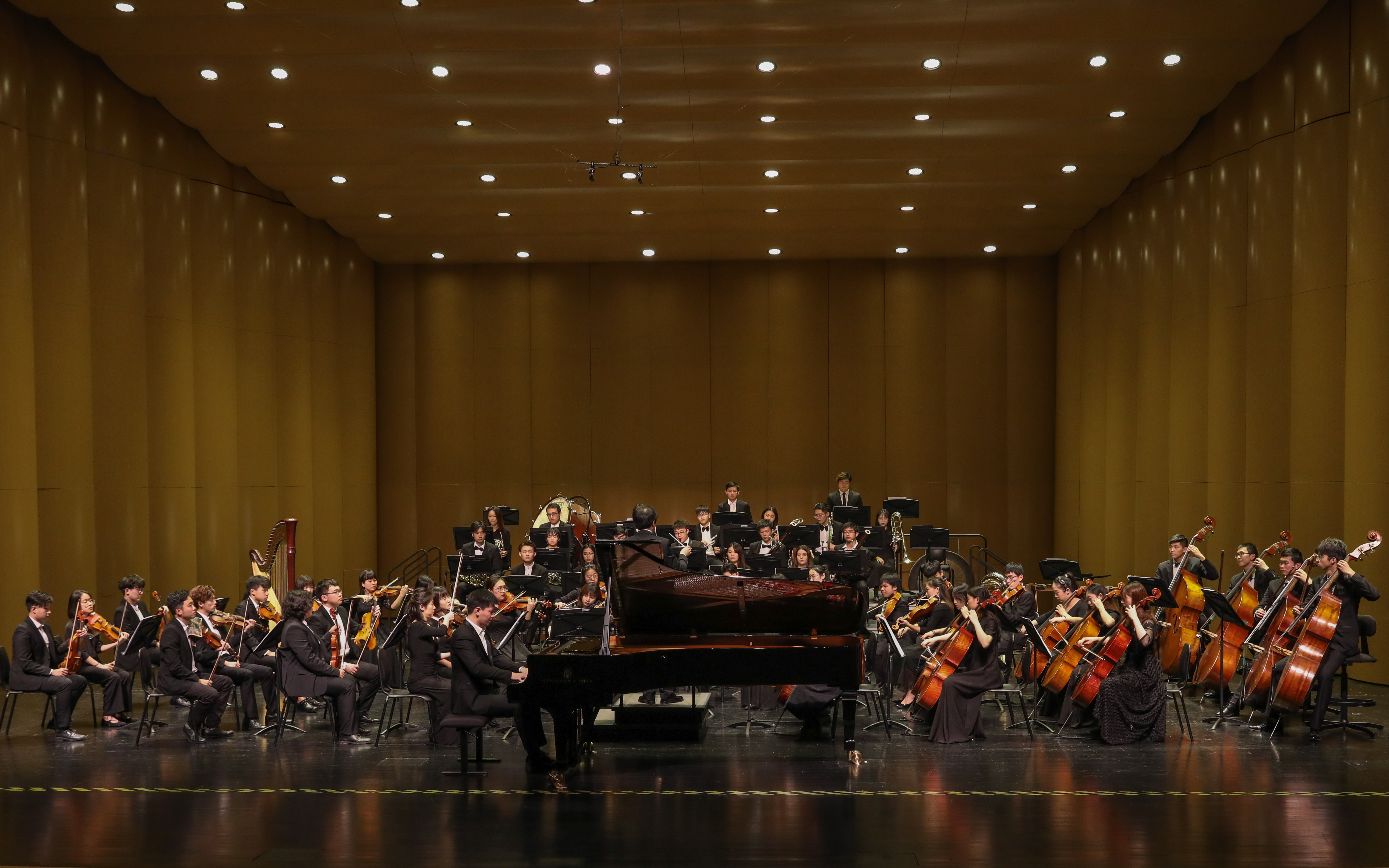 本场音乐会由上海歌剧院常任指挥、青年指挥家、钢琴家张诚杰,开云电子交响乐团指挥王桐共同执棒指挥。新年音乐会在钢琴协奏曲《黄河》中拉开序幕,由音乐学院四位学生担任钢琴独奏,与交响乐团合作,激情演绎了《黄河船夫曲》《黄河颂》《黄河愤》《保卫黄河》四个乐章。深邃舒缓的音符如黄河之水流入每个观众心中,铿锵激扬的旋律好似黄河激浪,既澄净心灵,更催人奋进,中华民族不屈与奋斗的气质被展现得淋漓尽致。