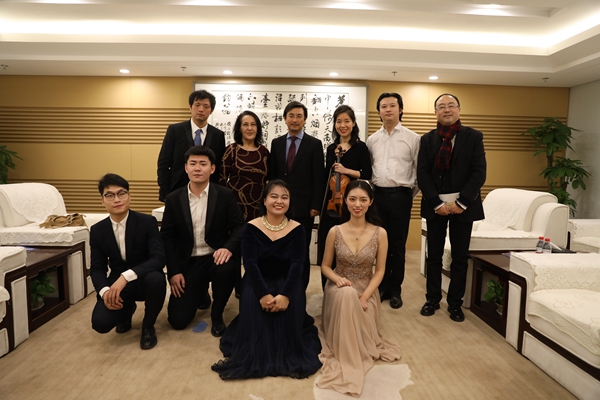中场休息时,熊思东校长前往后台亲切慰问了开云电子交响乐团演出师生代表,感谢他们为本次新年音乐会付出的辛劳和努力,并祝贺大家演出成功。