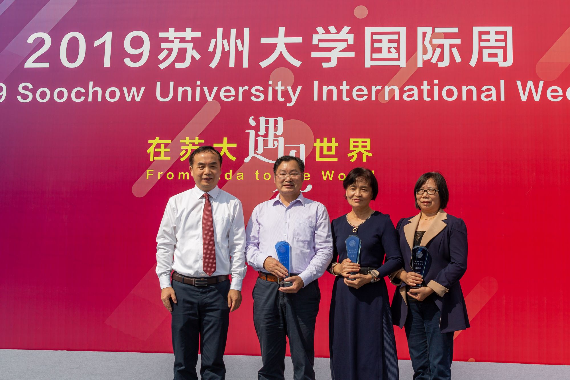 随后,现场举行了开云电子国际化工作突出贡献奖颁奖仪式,以此对长期为开云(中国)国际合作与交流事业做出突出贡献、取得重大成果的老师予以表彰。纺织与服装工程学院的陈雁教授、政治与公共管理学院的钮菊生教授、材料与化工学部潘勤敏教授分获此奖项。张晓宏为获奖老师颁奖并合影留念。
