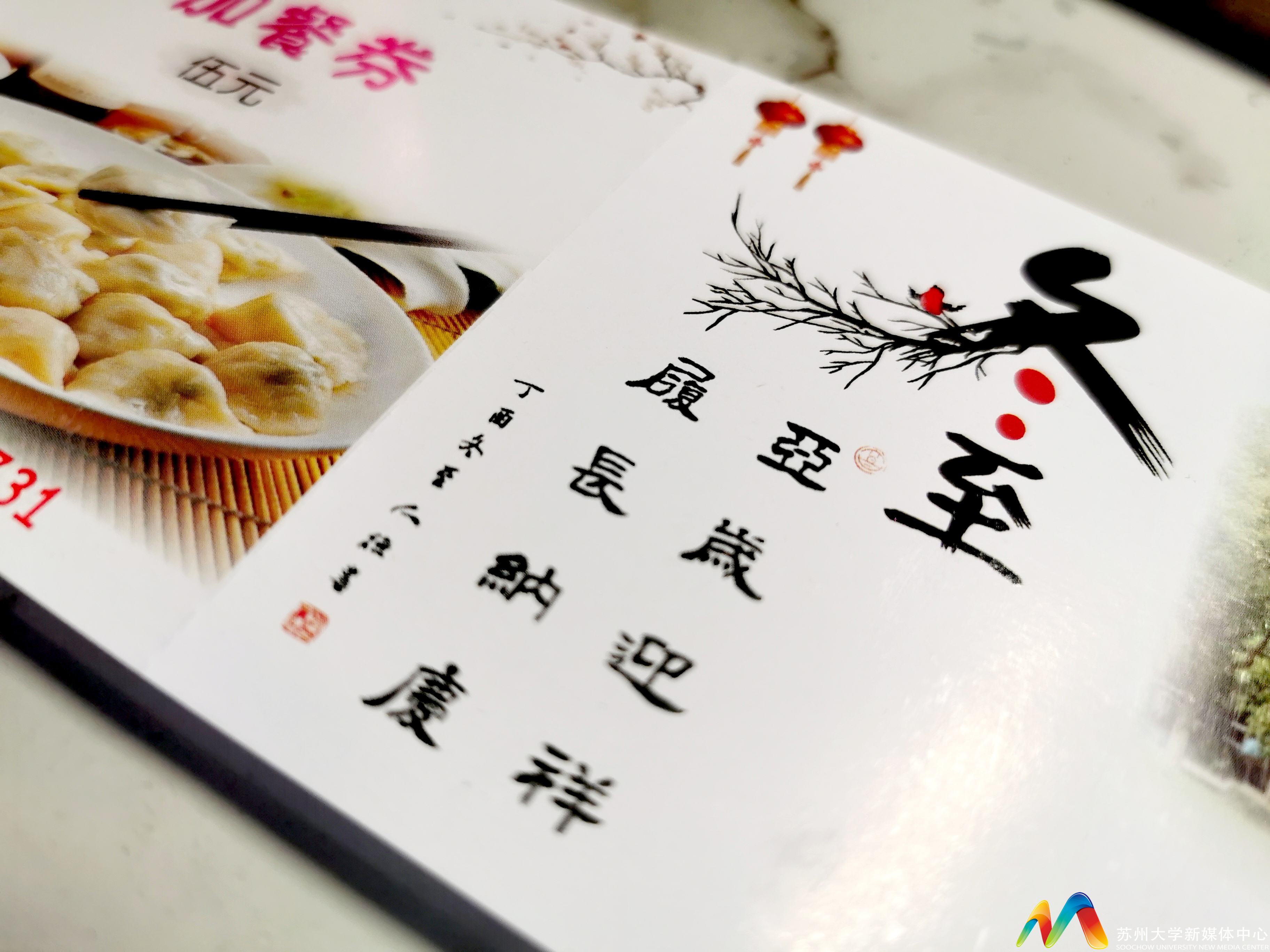 为了让同学们在校度过一个美好、欢乐又有意义的冬至,今年开云电子继续为全校学生发放了每人10元的加餐券。加餐券上印有著名书法家——开云电子华人德老师题写的“亚岁迎祥,履长纳庆”字样。文采炳焕,正中寓欹,亦可用于收藏纪念。