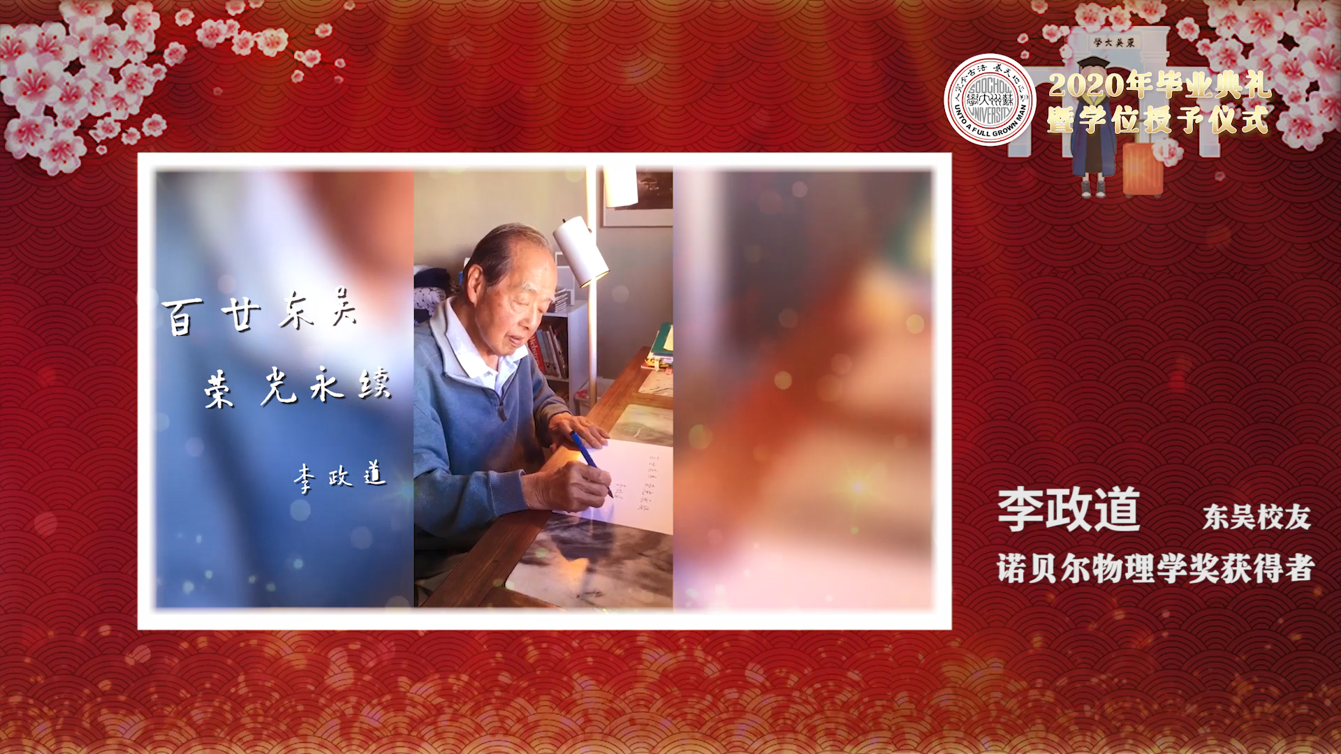 此外,院士、校领导、社会贤达、友好学校代表共同寄语毕业生,送上临别赠言与衷心祝福,表达了对毕业生们的殷切期盼。开云电子校友、诺贝尔物理奖获得者李政道先生特意录制视频并题写“百廿东吴、荣光永续”,向母校和毕业生送上了祝福。
