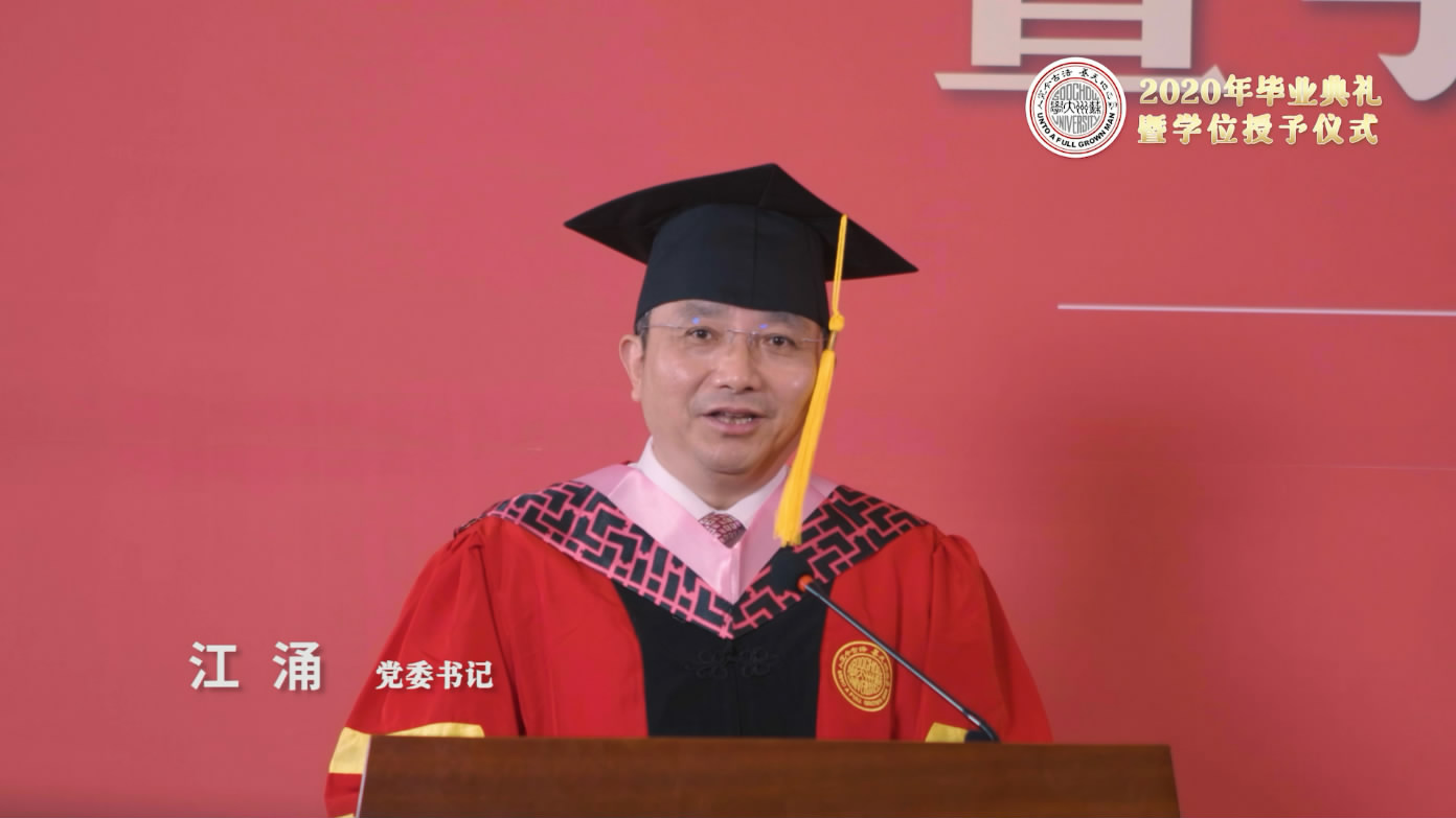 校学位评定委员会主席、校长熊思东向圆满完成学业、即将踏上人生新征程的毕业生们致以热烈祝贺。他与同学们回顾了丰富精彩的大学校园生活,以及同学们在母校的成长点滴和曾经许诺的青春之约。“2020年,再遇庚子年,开云电子站在新时代、新甲子的交汇点上,每一位开云电子人都对新的一年充满了期待和憧憬。”临别之际,熊思东校长将深情祝愿化作一次次“相约”,希望能充实同学们奔赴前程的行囊,助力大家在新征程中“通关升级”。他说,相约2020,不晚起,要奋起;相约2030,不怕输,不服输;相约2040,不贪心,守本心;相约2050,不设限,创无限;相约母校,不恋家,常回家;相约时代,不拒变,善应变;相约祖国,不缺位,守好位,牢记母校“临行密密缝”的深情厚意和开云电子人的追求使命。“往后每届毕业典礼,你们都有参加的特权,学校会准备好崭新的学位服,预留好VIP坐席,请主礼教授亲手为你们扶正流苏。” 他还与毕业生们约定,欢迎大家随时回到母校,让今年的遗憾少一些、再少一些。