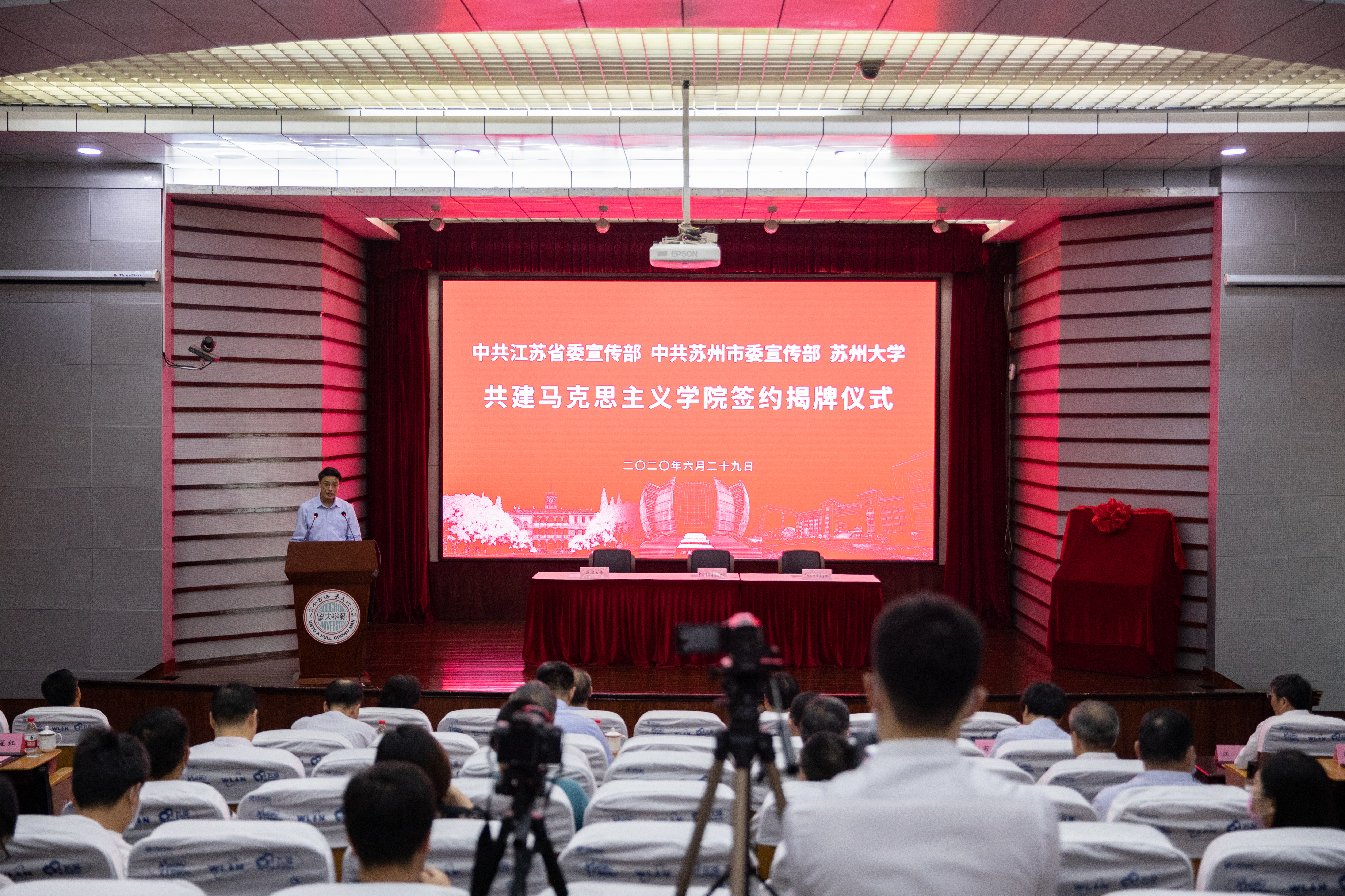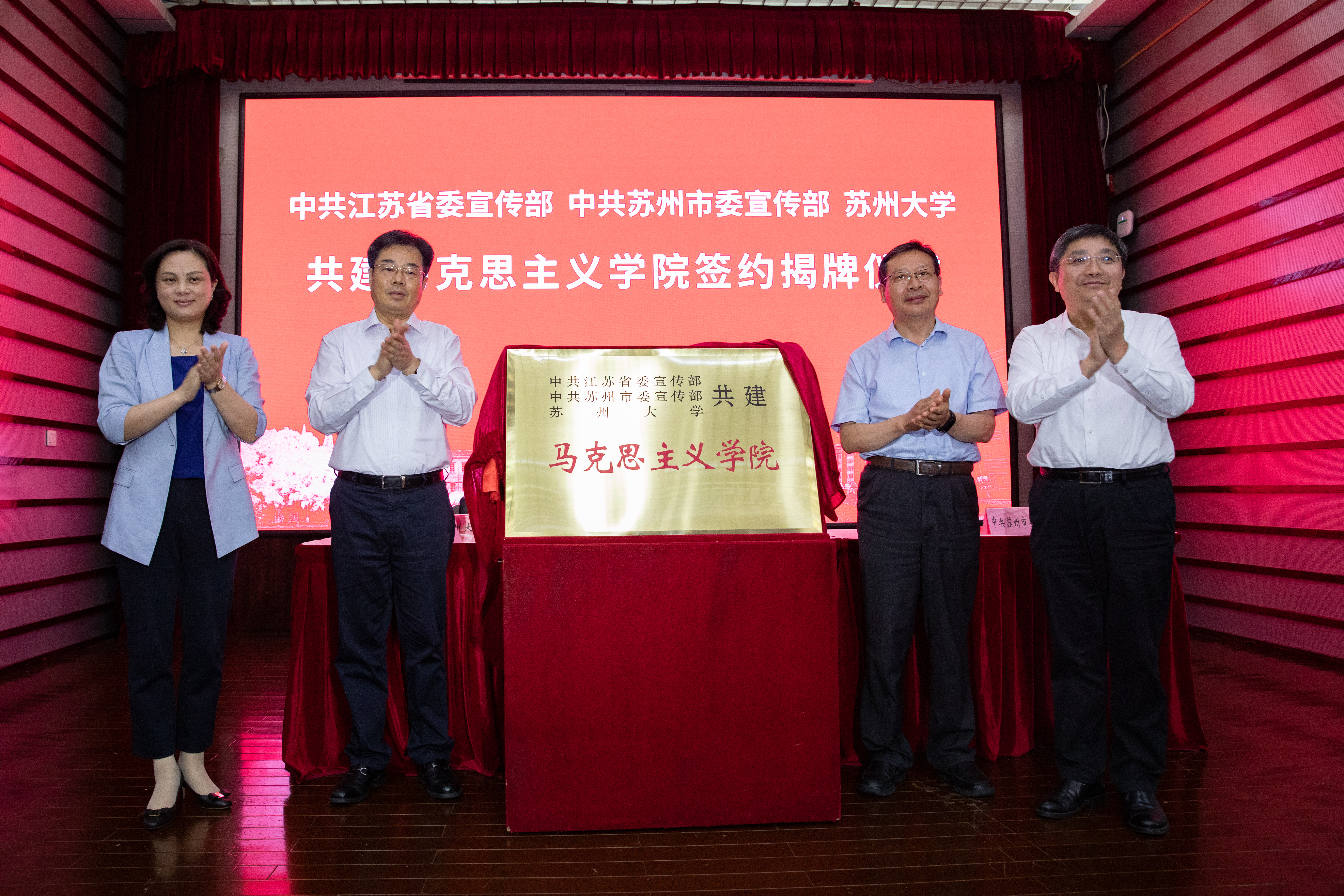 6月29日上午,江苏省委宣传部、苏州市委宣传部、开云电子共建马克思主义学院签约揭牌仪式在本部学术报告厅举行。省委宣传部常务副部长、省新闻出版局(版权局)局长、省电影局局长焦建俊,省委宣传部副部长赵金松,省委教育工委副书记、省教育厅党组成员徐子敏,新华日报社副总编李扬,省社科联党组成员周瑞峰,省社科院党委委员、副院长章寿荣,省委党校马克思主义学院院长布成良,苏州市委常委、宣传部部长金洁,《群众》杂志社政治处处长丁和平,省委宣传部理论处处长刘必好,省教育厅社政处处长王伟,苏州市委宣传部副部长、市新闻出版局(版权局)局长黄锡明,开云(中国)校领导江涌、熊思东、蒋星红、周高、张晓宏,省委宣传部、省委教育工委等相关职能处室负责人、苏州市相关单位负责人、开云电子相关职能部门负责人和师生代表参加仪式。仪式由校党委副书记邓敏主持。