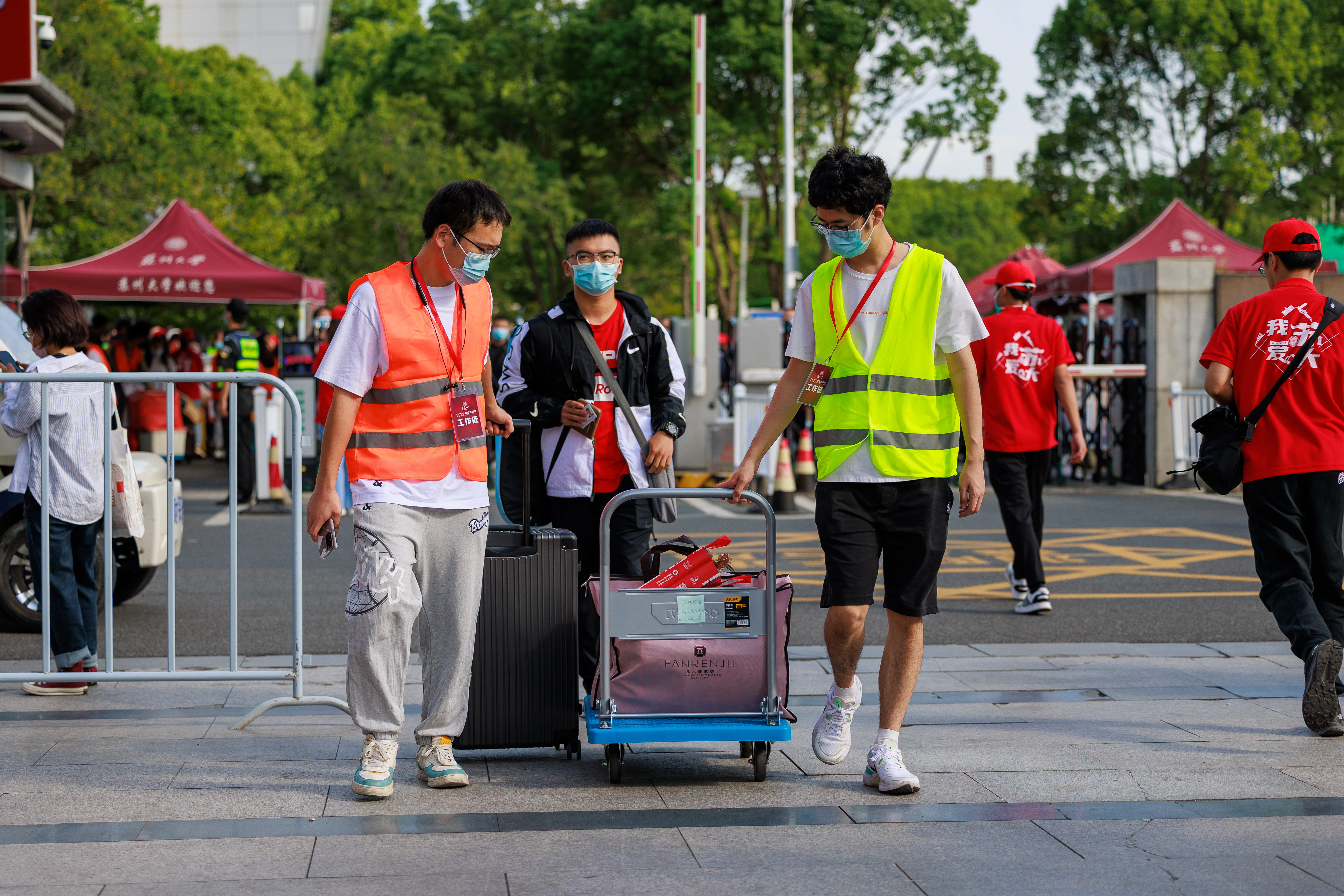 天光微亮,身穿“我爱开云电子”红马甲的学生志愿者便等候在迎新点,看到新生前来报到便快步上前,热情周到帮助新生搬运行李、办理报到手续,各学院(部)的老师及相关职能部门的工作人员也在现场为新生提供周到服务。