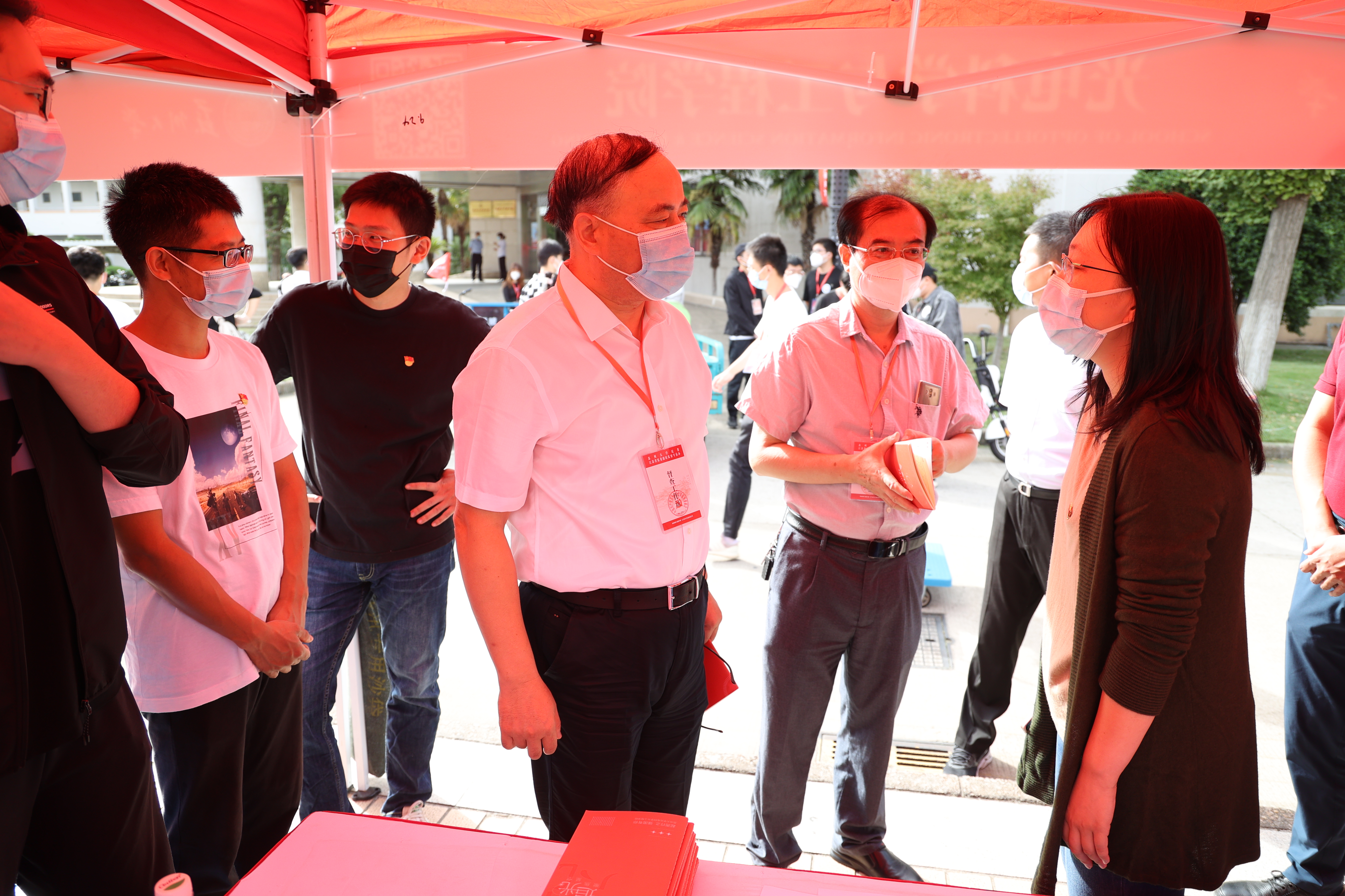 24日上午,校党委书记江涌,党委常委、副校长、组织部部长查佐明来到阳澄湖校区,了解迎新保障工作和新生报到情况,慰问参加迎新工作的师生志愿者,并与新生亲切交谈、合影留念。在迎新接待点,江涌提醒各学院(部)及相关部门要做好疫情防控各项工作,关注新生学习生活所需,通过精彩丰富的校园活动帮助大家更快、更好地适应大学生活。江涌为正好到校报到的机电工程学院新生王泊融送上了学院专门定制的小礼品,叮嘱他要在接下来的学习中努力钻研,在生活中不断增进与同学们的友谊,在美好的大学时光中不断成长进步。
