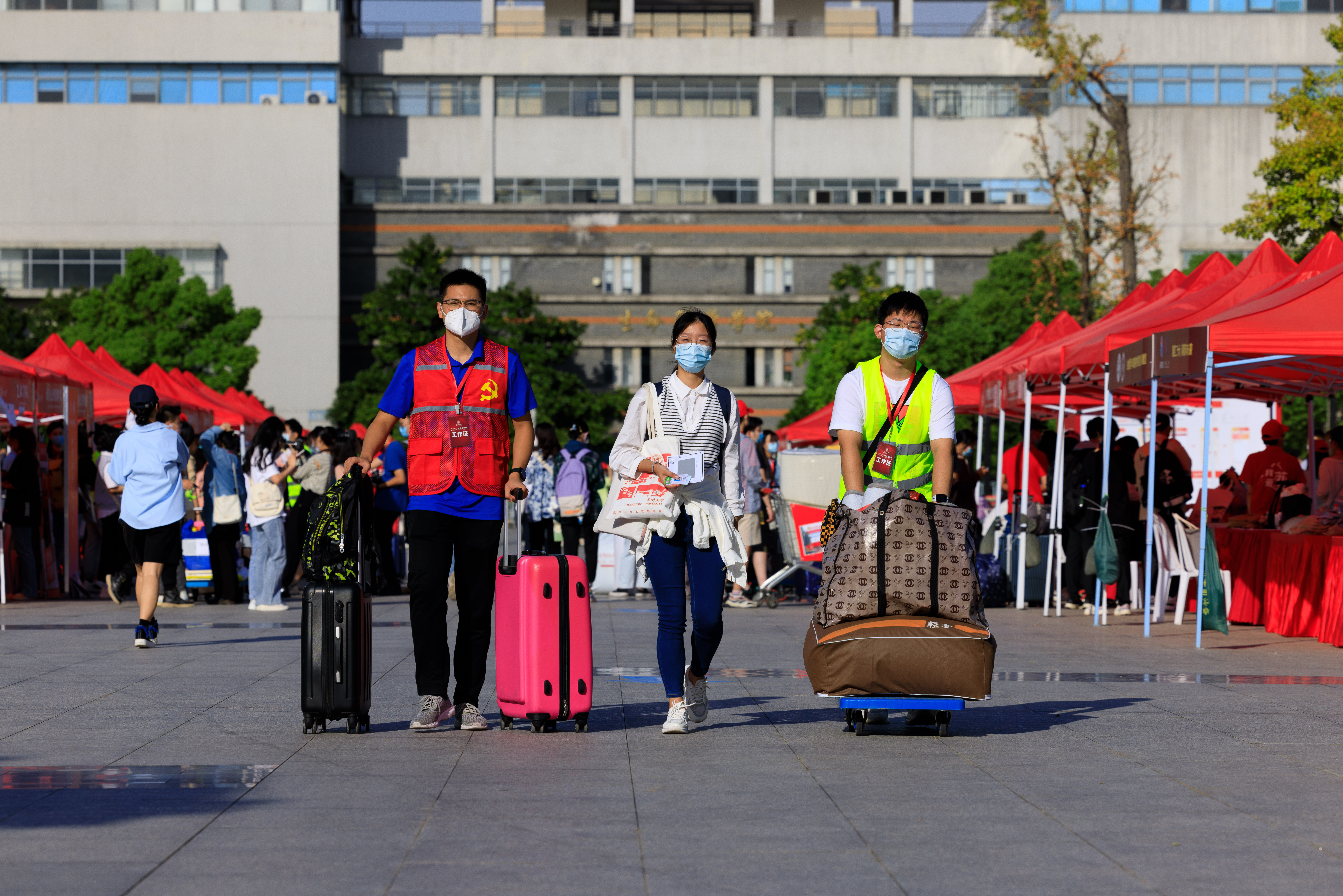 高效信息摸排、热情咨询答疑、耐心指路引导、辛苦搬运行李、发放新生福袋、组织梦想封存活动……在敬文书院迎新点,由“敬文花红”党员志愿服务团、高年级助理导师组建的志愿服务团队贴心助力新生报到,陪伴新生适应、成长,用实际行动践行初心使命,让党徽在迎新一线闪光。