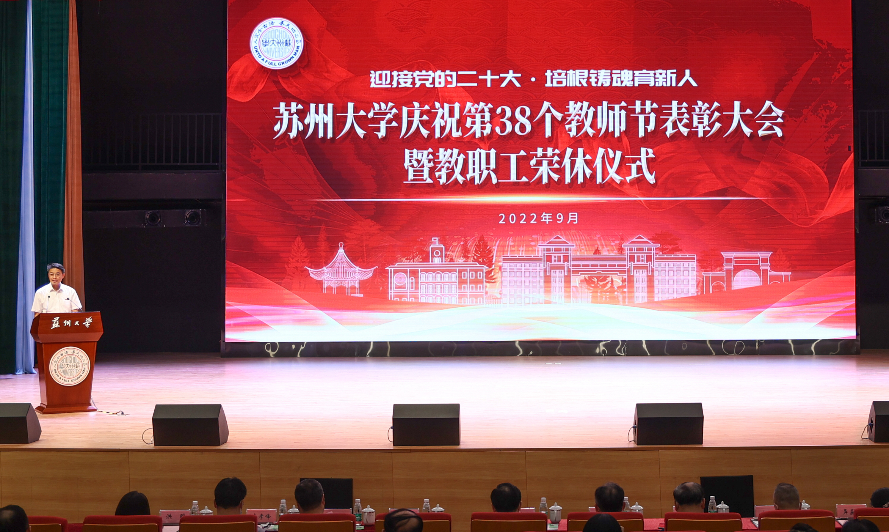 张晓宏向全体教职员工致以诚挚祝福,向受到表彰的老师们表示热烈祝贺,并向为学校建设发展付出辛劳、即将荣休或工作满30年的老师们致以崇高敬意。他指出,今年是党的二十大召开之年,教育部将教师节主题确定为“迎接党的二十大,培根铸魂育新人”,就是要号召广大教师坚定理想信念,心怀“国之大者”,在全面建设社会主义现代化国家的新征程中勇担培育时代新人的历史使命,以昂扬向上的精神面貌和立德树人的扎实行动,迎接党的二十大胜利召开。结合学校实际工作,张晓宏提出了三点意见:一是希望广大教职工深入学习贯彻习近平总书记关于教育的重要论述,坚守立德树人初心使命;二是希望广大教职工以学校第十三次党代会的召开为契机,凝聚“双一流”建设的磅礴力量;三是希望全校上下重视师资队伍建设,全面建设高素质专业化教职工队伍。张晓宏强调,全体教职工要把个人理想与学校事业发展紧密相连,在坚守初心中奋斗修身,在践行使命中铸魂育人,以学校“双一流”建设为目标,凝心聚力、齐心协力,推动学校事业高质量发展,以实际行动迎接党的二十大胜利召开!