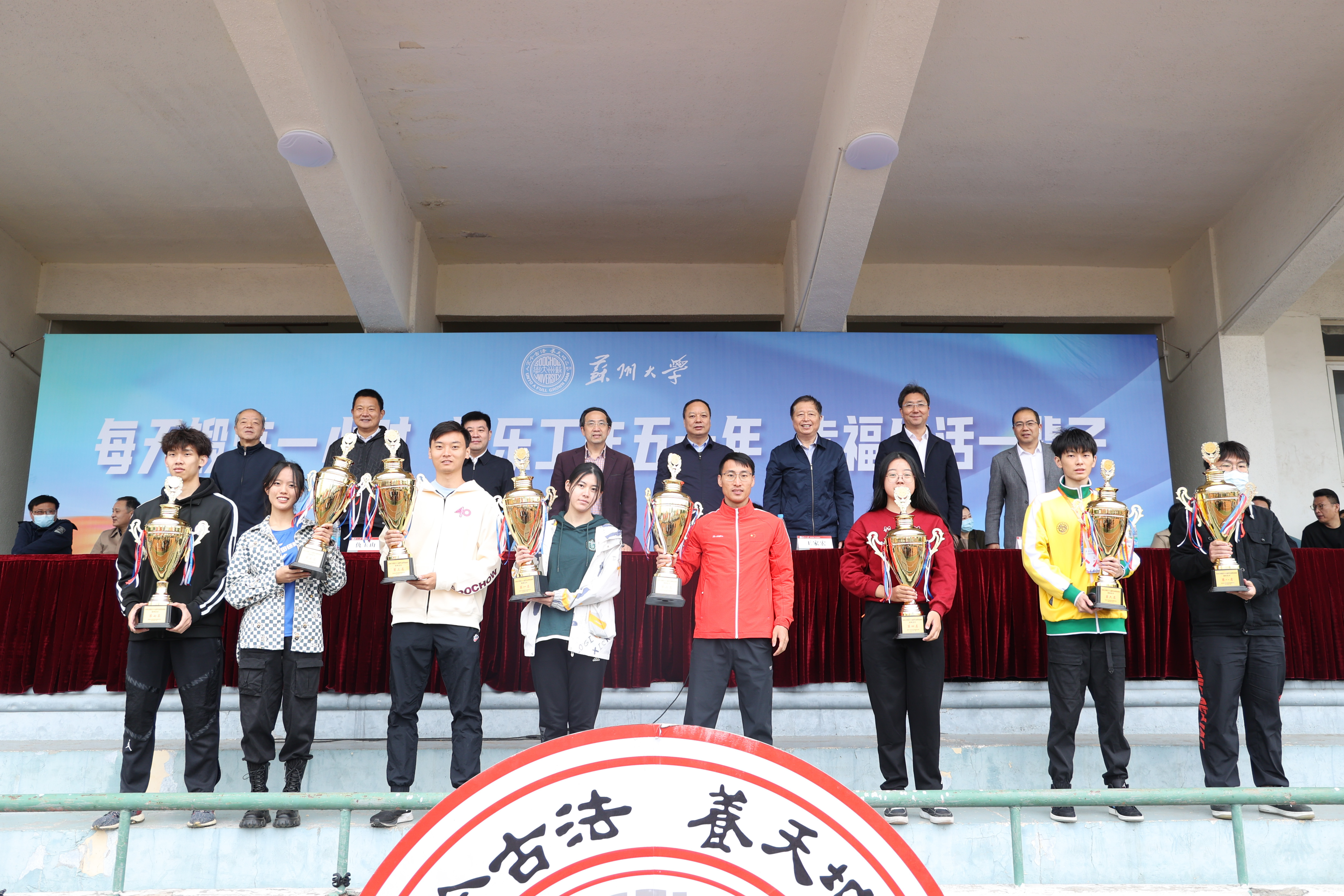 11月13日上午,本届体育运动会闭幕式在东区运动场举行。校党委常委、副校长姚建林,江苏省学生体协高校工作委员会主任王家宏,各学院(部)及职能部门负责人出席闭幕式。仪式由校体委副主任、东吴学院院长张健主持。