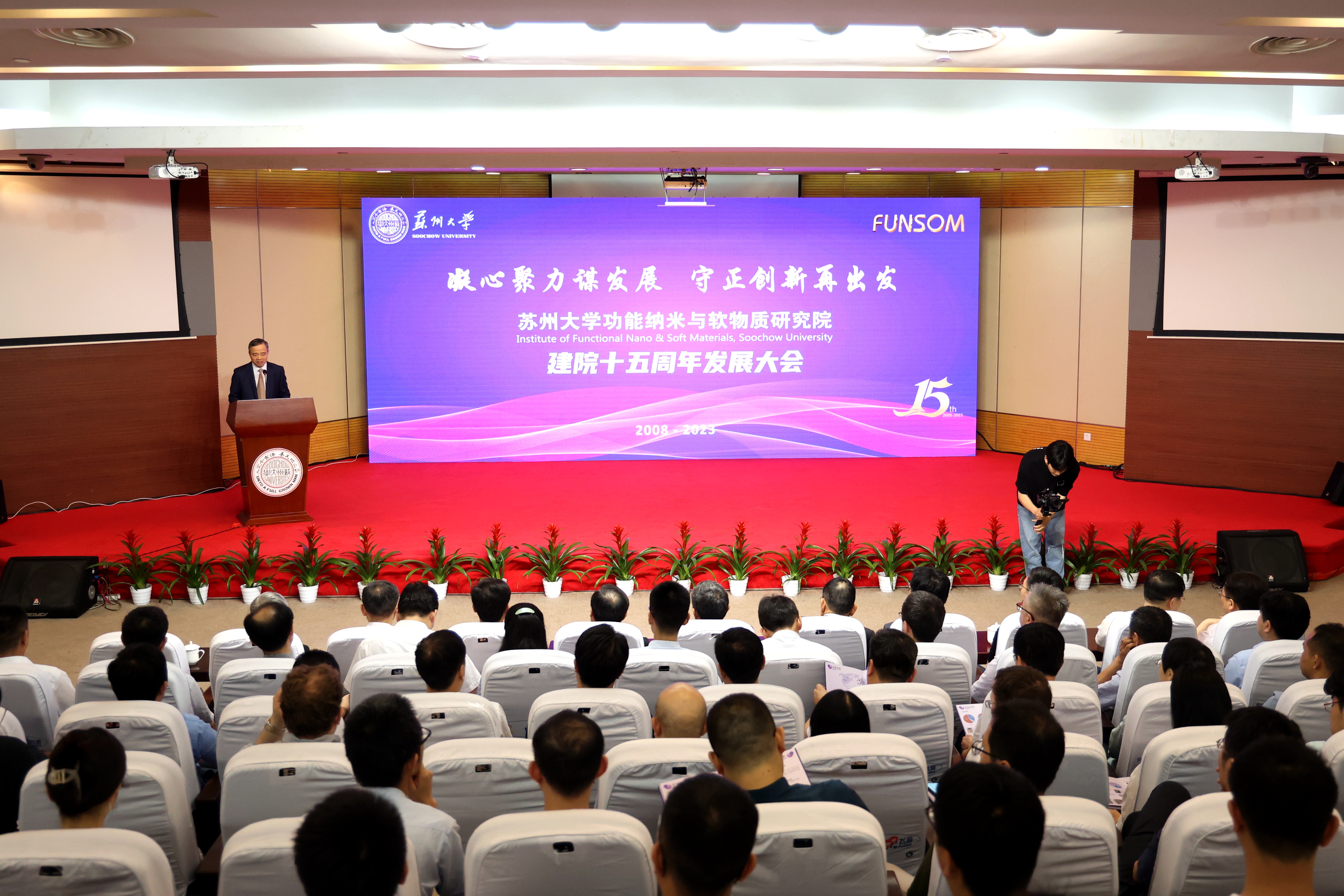 张晓宏在讲话中代表学校向功能纳米与软物质研究院建院十五周年表示热烈祝贺,向长期以来关心、支持研究院发展的各位领导、专家学者、社会友人表示衷心感谢。他指出,研究院始终践行人才是第一资源的发展理念,以立德树人为根本使命,以创新科研筑牢发展根基,以开放协同提升国际影响,取得了许多令人振奋的成绩。在建院十五周年的新起点和新征程上,希望研究院继续深化试点改革,继续推进内涵建设,勇当学校改革创新发展的领头雁。