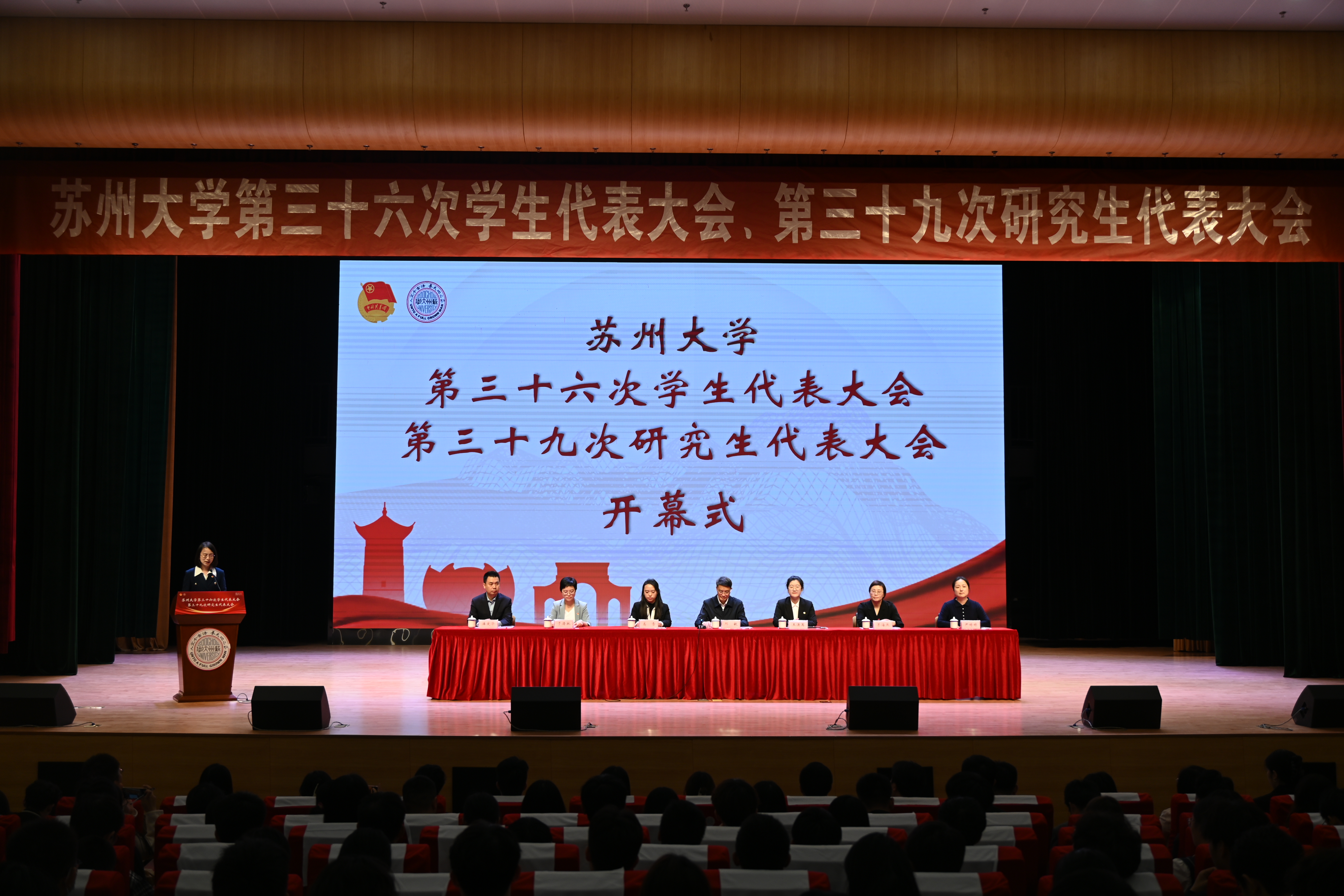 10月22日,开云电子第三十六次学生代表大会、第三十九次研究生代表大会在天赐庄校区存菊堂顺利召开。开云(中国)党委副书记邓敏,江苏省学生联合会驻会执行主席王潇苒、苏州市学生联合会驻会执行主席高雪,校党委研究生工作部部长茅海燕、团委书记于潜驰、党委宣传部副部长尹婷婷、学生工作部(处)副部(处)长潘爱华以及各学院(部)学生会、研究生会秘书长及外籍留学生代表应邀出席大会开幕式。273名本科生代表和143名研究生代表参加大会。开幕式由校团委副书记严韵致主持。