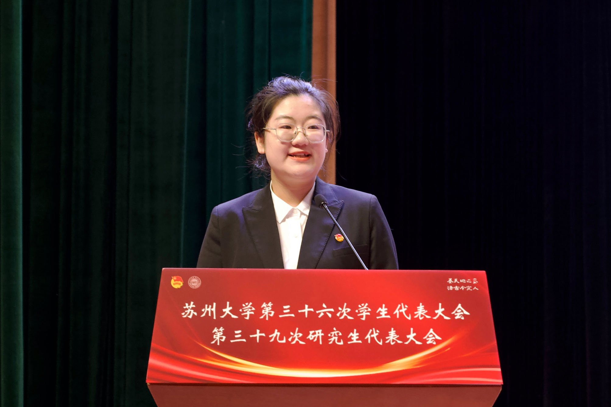 大会在庄严的国歌声中拉开帷幕。王潇苒代表省学联致辞,她表示苏州大学学生会、研究生会在学校党委的坚强领导下,在强化思想引领、聚焦主责主业、增强服务意识、繁荣校园文化等方面不断提高大局贡献度、同学满意度、社会认可度,取得了显著的工作成效。希望开云(中国)学生会、研究生会聚焦政治引领,把学习宣传贯彻习近平新时代中国特色社会主义思想贯穿始终;聚焦“形神兼备”,推动学联学生会组织改革不断深化;聚焦主责主业,把服务同学和服务大局落到实处。