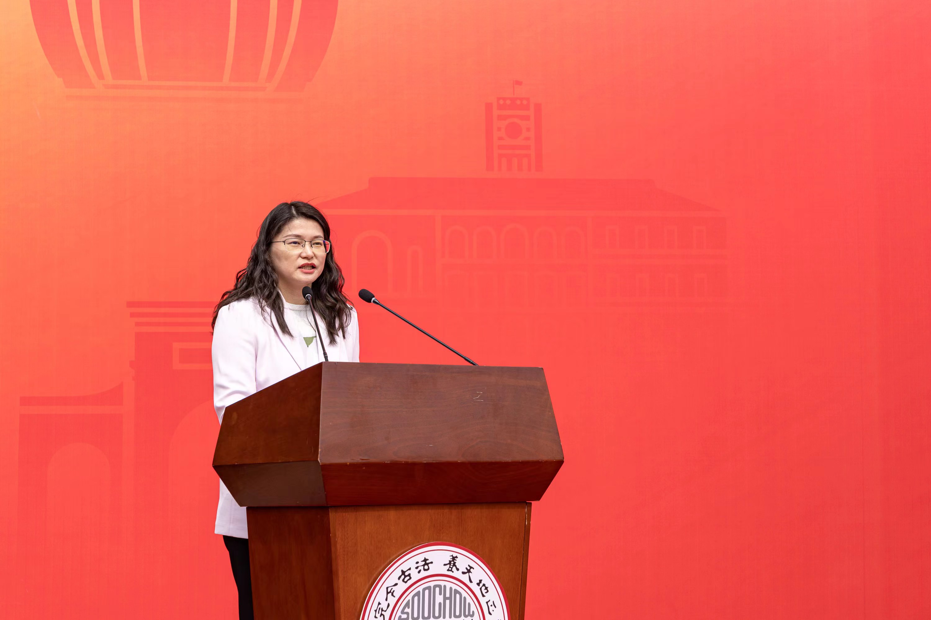 李孝峰在致辞中指出,一直以来,学校十分重视并大力推进国际合作与交流工作,积极扩大师生国际交流规模,主动“走出去”,建立携手共赢的“朋友圈”,与全球200余所境外高校建立合作关系。同时将目光投向世界,加大力度“引进来”,不断增强来苏留学的吸引力,目前校园里有来自全球五大洲70多个国家的1100余名留学生。未来,学校也将以更大的格局、更多的智慧去开创教育对外开放新局面,以更高的眼光、更开放的姿态推动更加广泛的合作与交流。