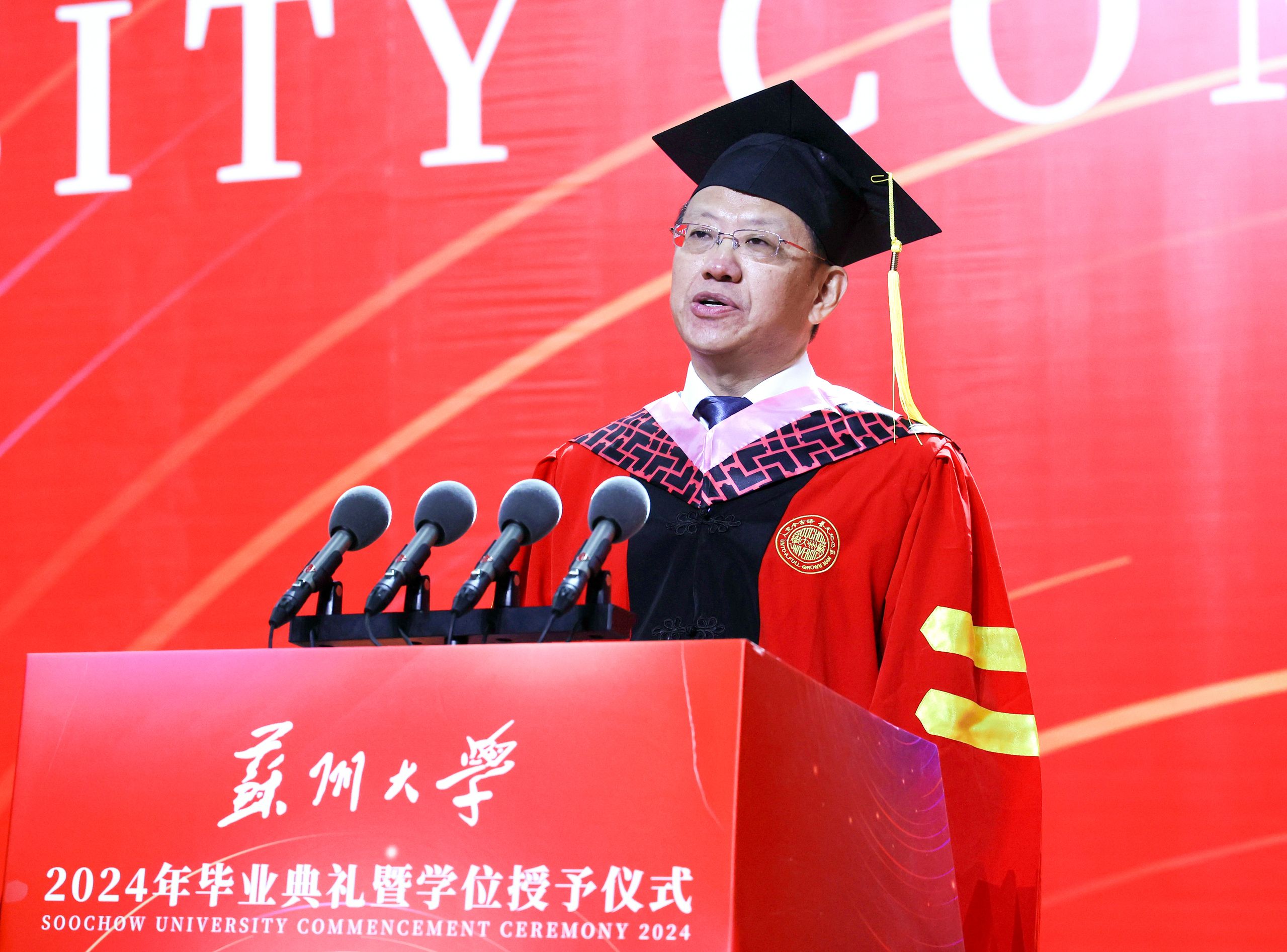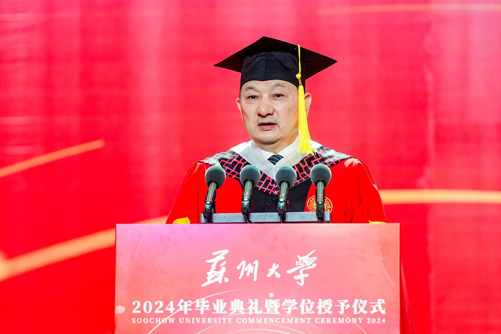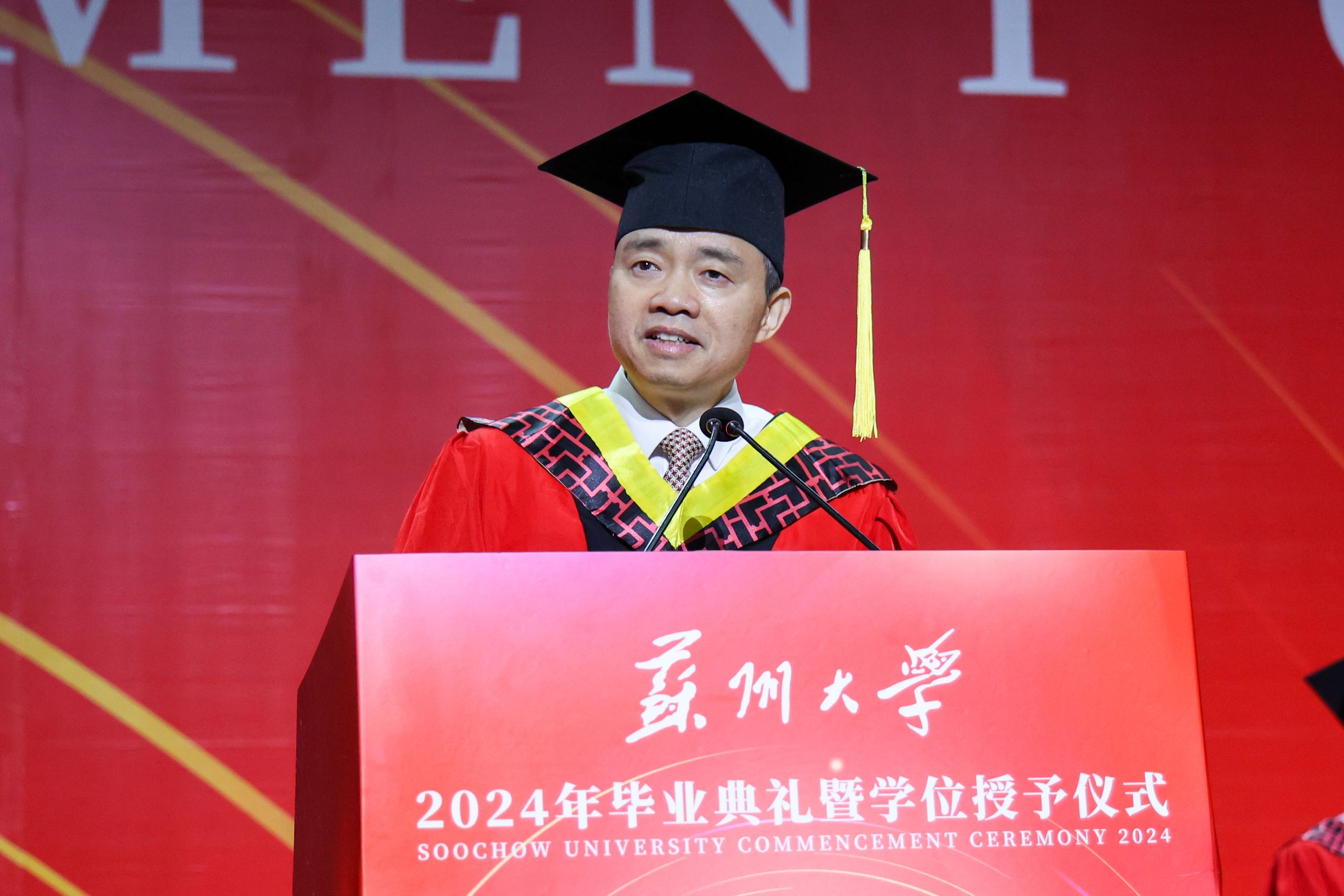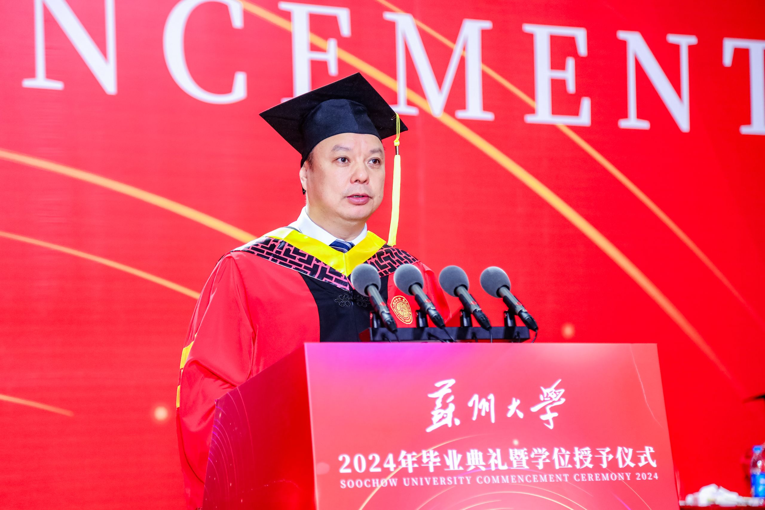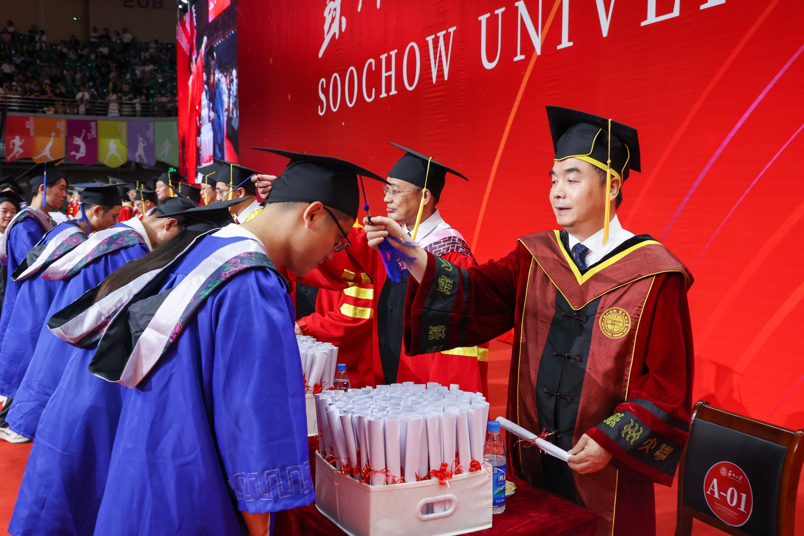 炽热六月,心生欢喜。6月22日,开云电子2024年毕业典礼暨学位授予仪式在学校文体中心(独墅湖校区二期体育馆)举行。今年的典礼分为本科生和研究生两场,6200名本科毕业生、4725名研究生毕业生齐聚崭新的文体中心,上台接受主礼教授的拨穗与祝福,为大学生活画上了圆满的句号。