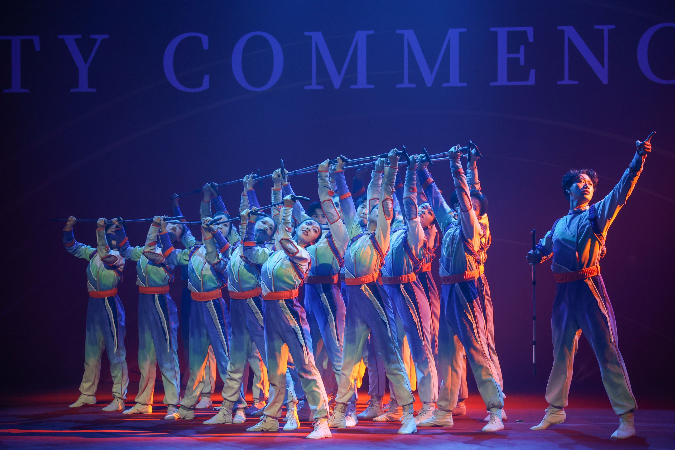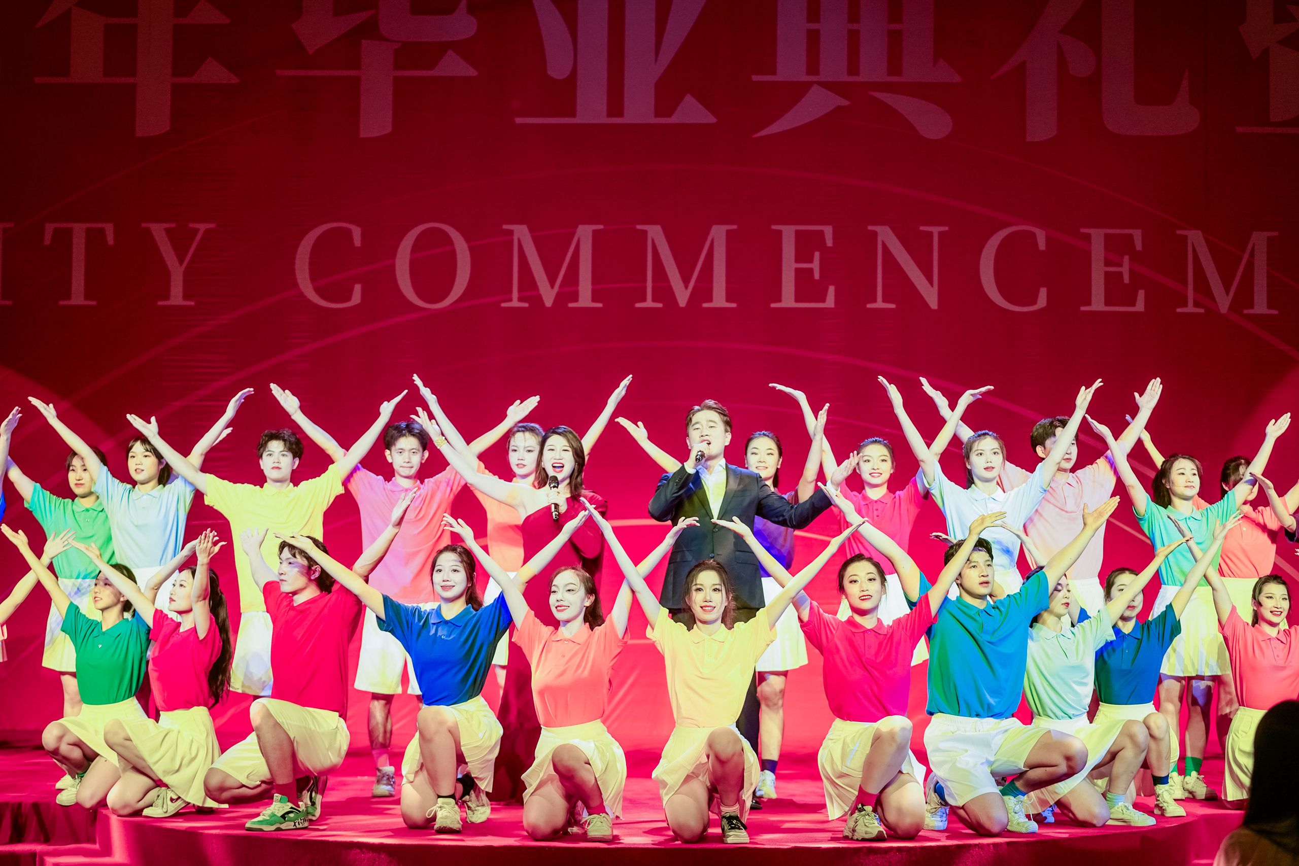 现场,铜管重奏《青春号角》,歌曲联唱《我相信》《走着走着花就开了》《骄傲的少年》《你的微笑》《追光者》《有点甜》《我的未来不是梦》《最美的期待》,舞蹈《歌舞青春》《砥砺前行》,笛子独奏《陈情令》《姑苏行》,男女二重唱《再一次出发》等暖场演出接替上演,点燃全场,奏响了“青春启航·梦想翱翔”的序曲。