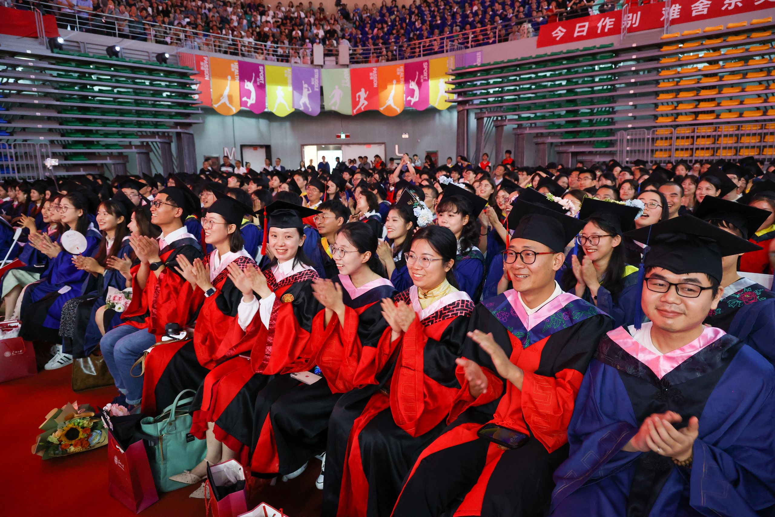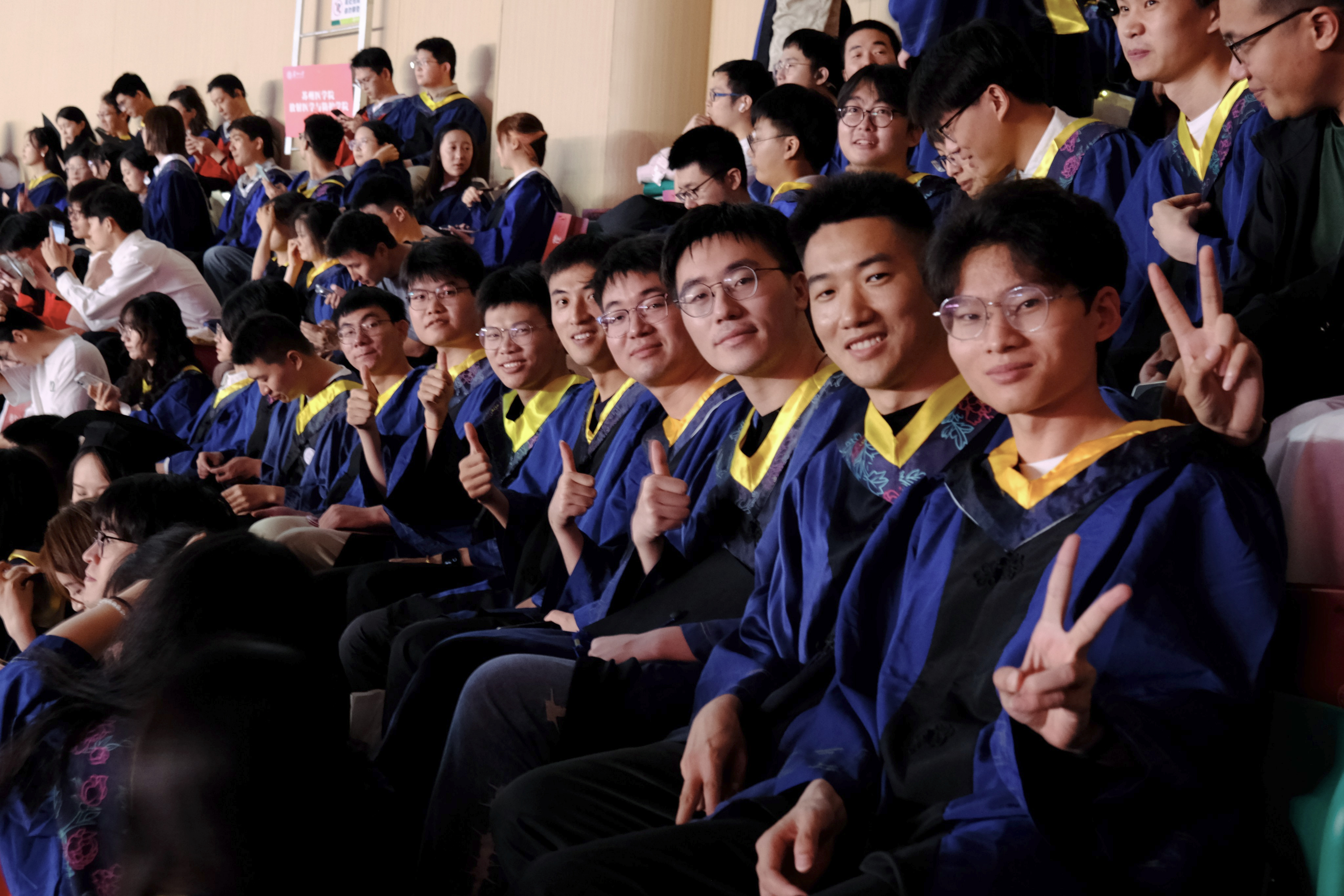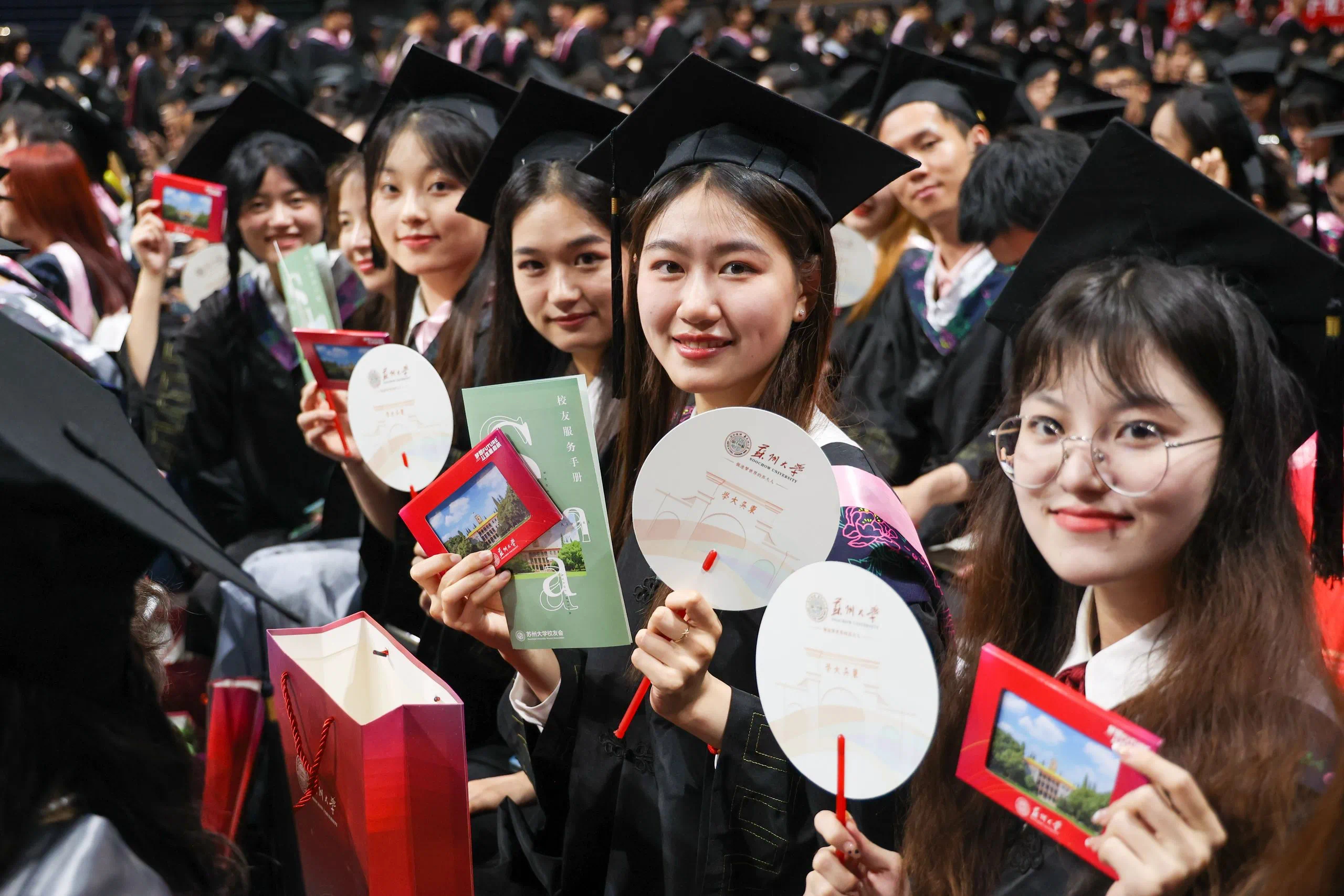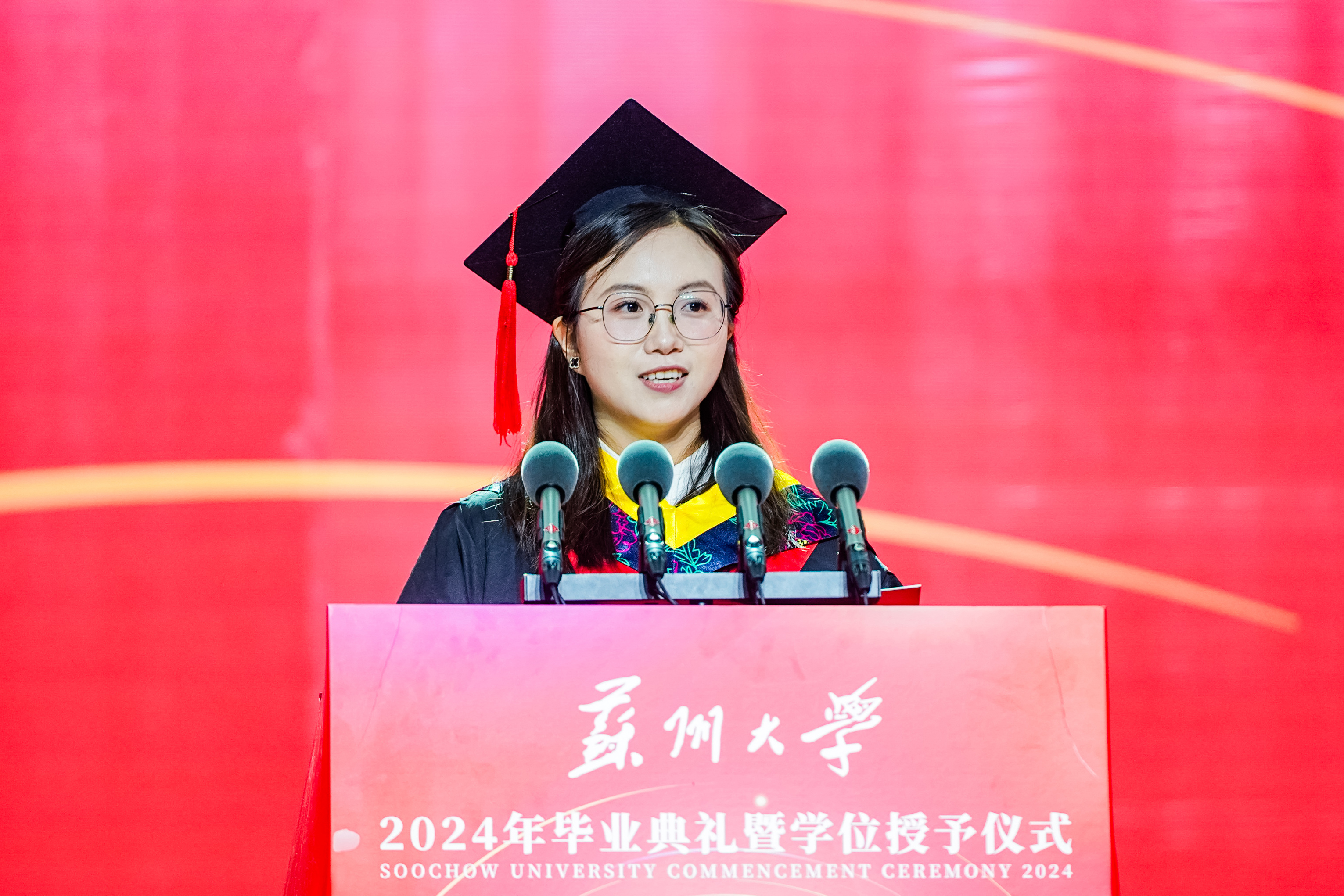 忆往昔,你踏进东吴门的那刻,稚嫩青涩,憧憬着未来与理想;展今朝,站在人生又一个新的节点,你挥手作别过往,铺展已然丰满的羽翼。“原来总感觉毕业遥遥无期,转眼间我们即将各奔东西。”2020级纳米科学技术学院的徐家铭在典礼后感慨时间飞逝,“当主礼教授将授予学位的卷轴交到我手中时,我愈发觉得正接过新时代的接力棒,要铭记母校对我的教诲,跑好青春接力赛!”当体育馆的灯光照耀全场,歌声响彻整个会场,每一位毕业生的脸上都闪耀着点点光芒。2022级文学院硕士研究生陈怡身处人群,内心澎湃,“感谢母校给我们的毕业盛宴,我会将校训永远留存心中。祝愿每一位毕业生毕业快乐,在今后的日子里九万里风鹏正举!”