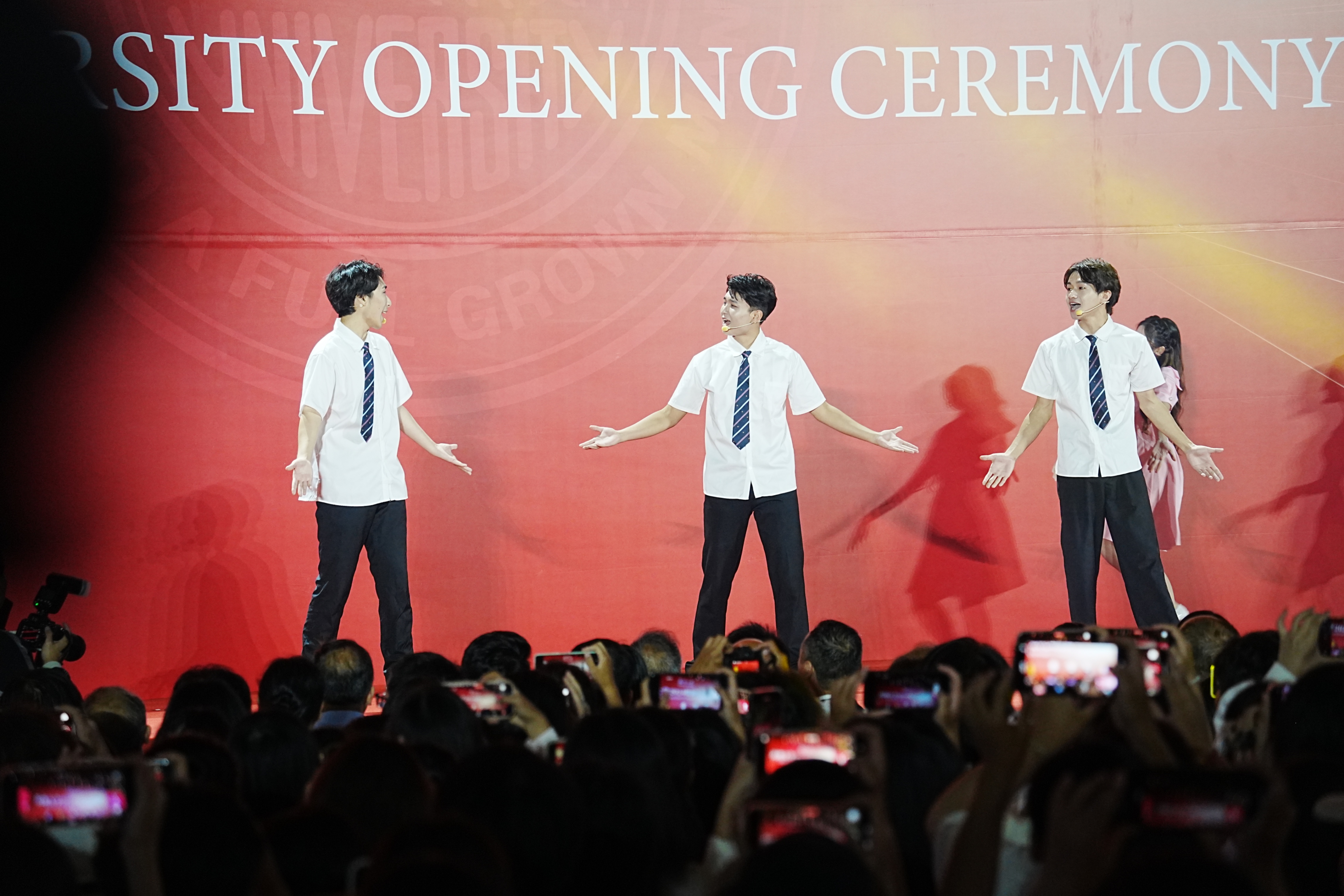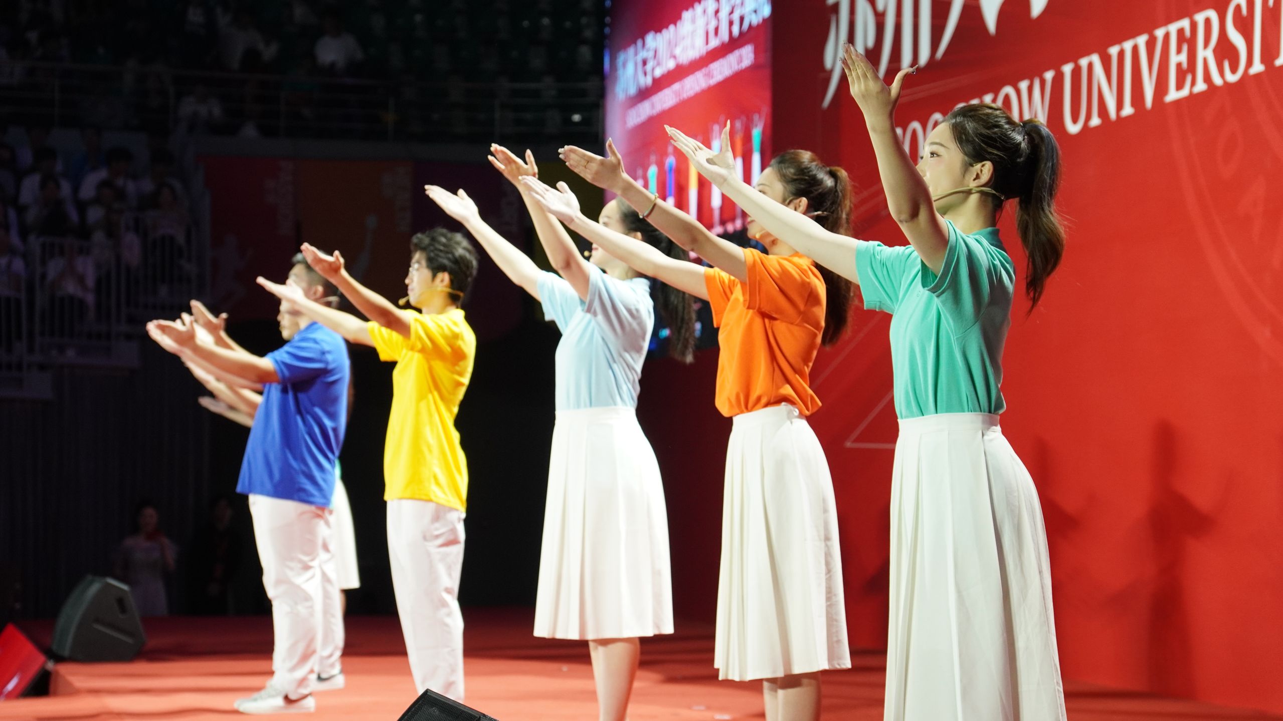 开学典礼正式开始前,艺术教育中心、音乐学院的老师们和东吴艺术团、开云电子交响乐团、开云电子合唱团的同学们联袂为大家带来了精彩的美育展演。