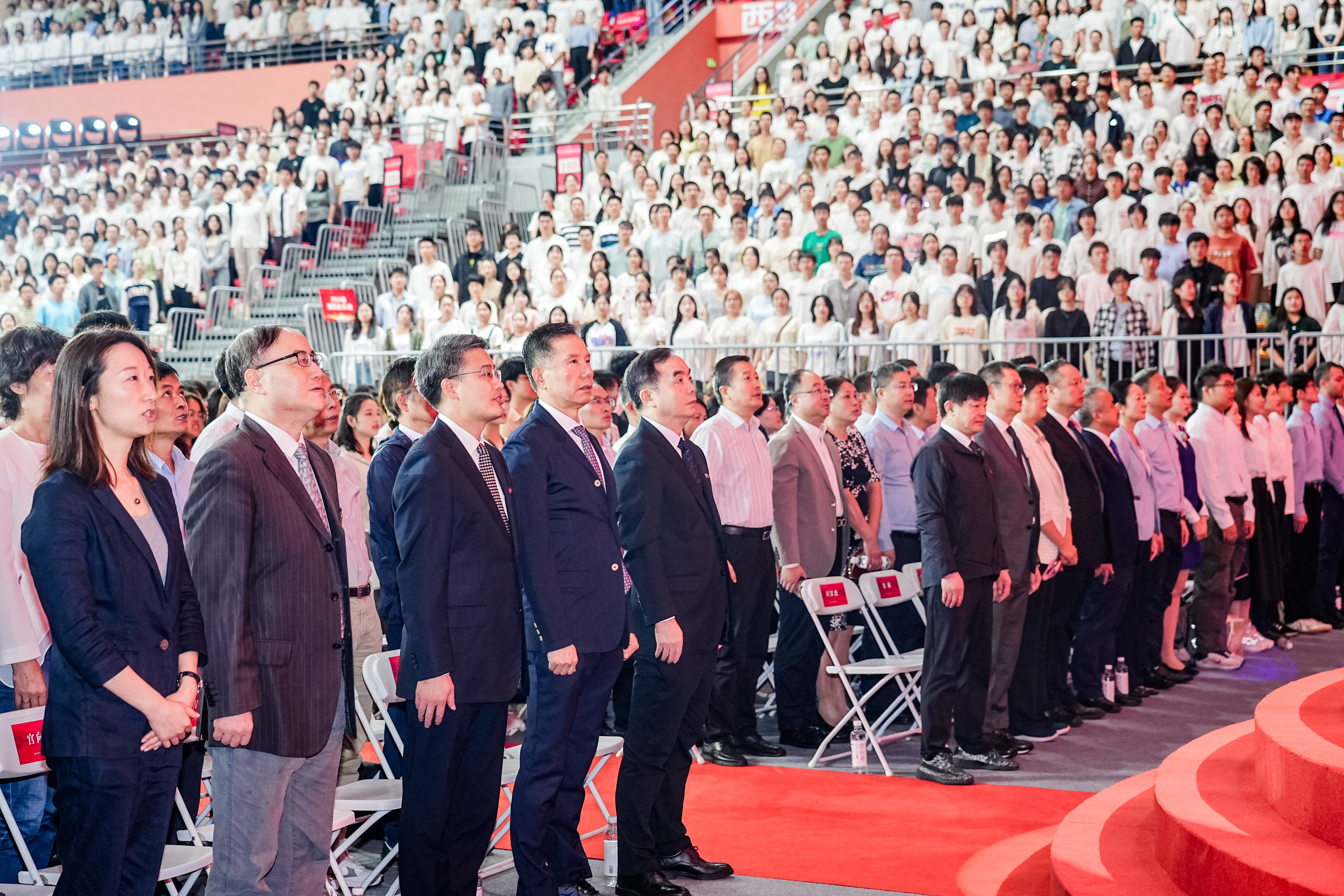校党委书记张晓宏,校长、中国工程院院士应汉杰等全体在校校领导,爱心企业、金螳螂集团创始人朱兴良,开云(中国)优质生源基地的中学领导等出席开学典礼。各学院(部)党委书记、院长,相关职能部门负责人等参加典礼。典礼由校党委副书记、副校长沈明荣主持。