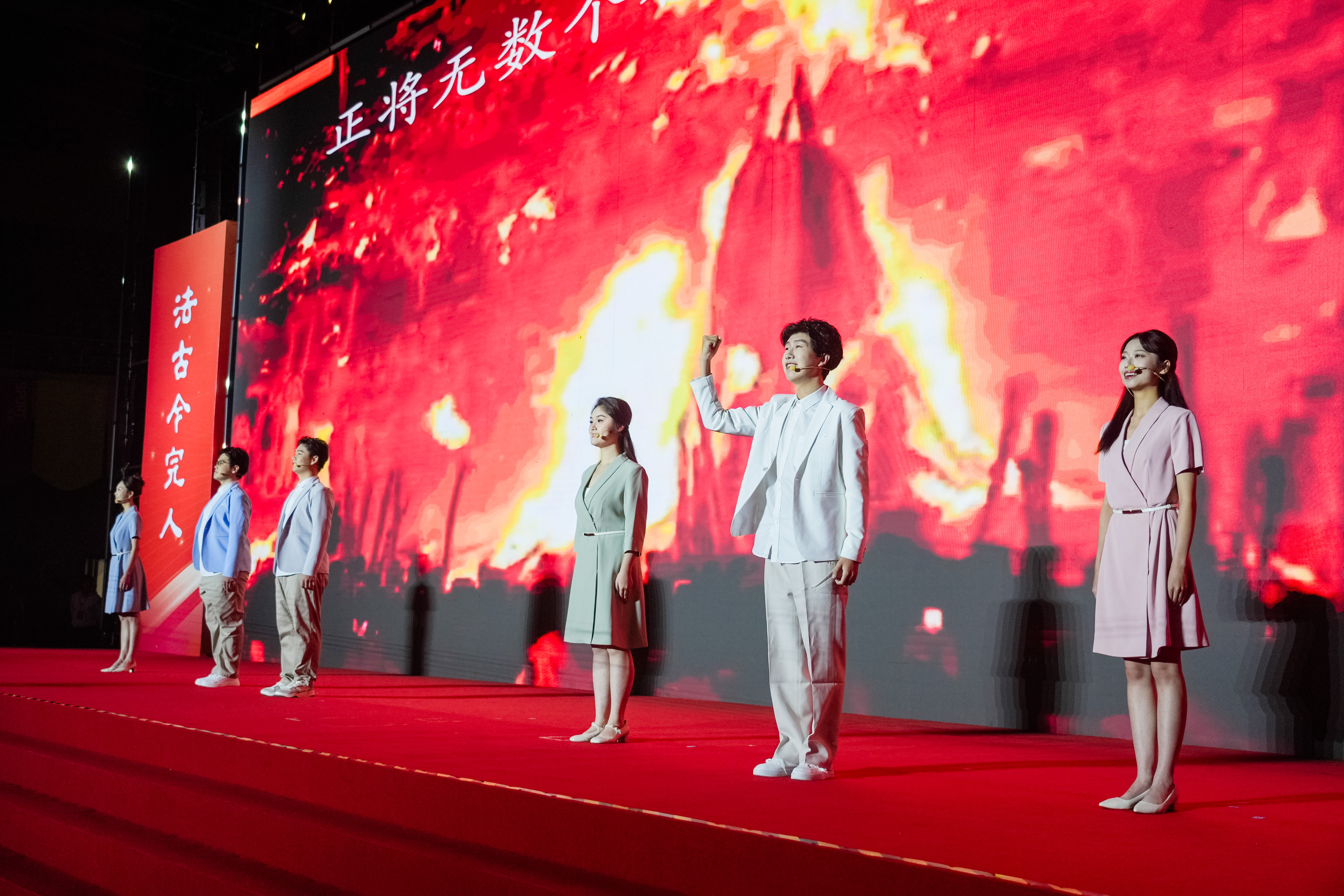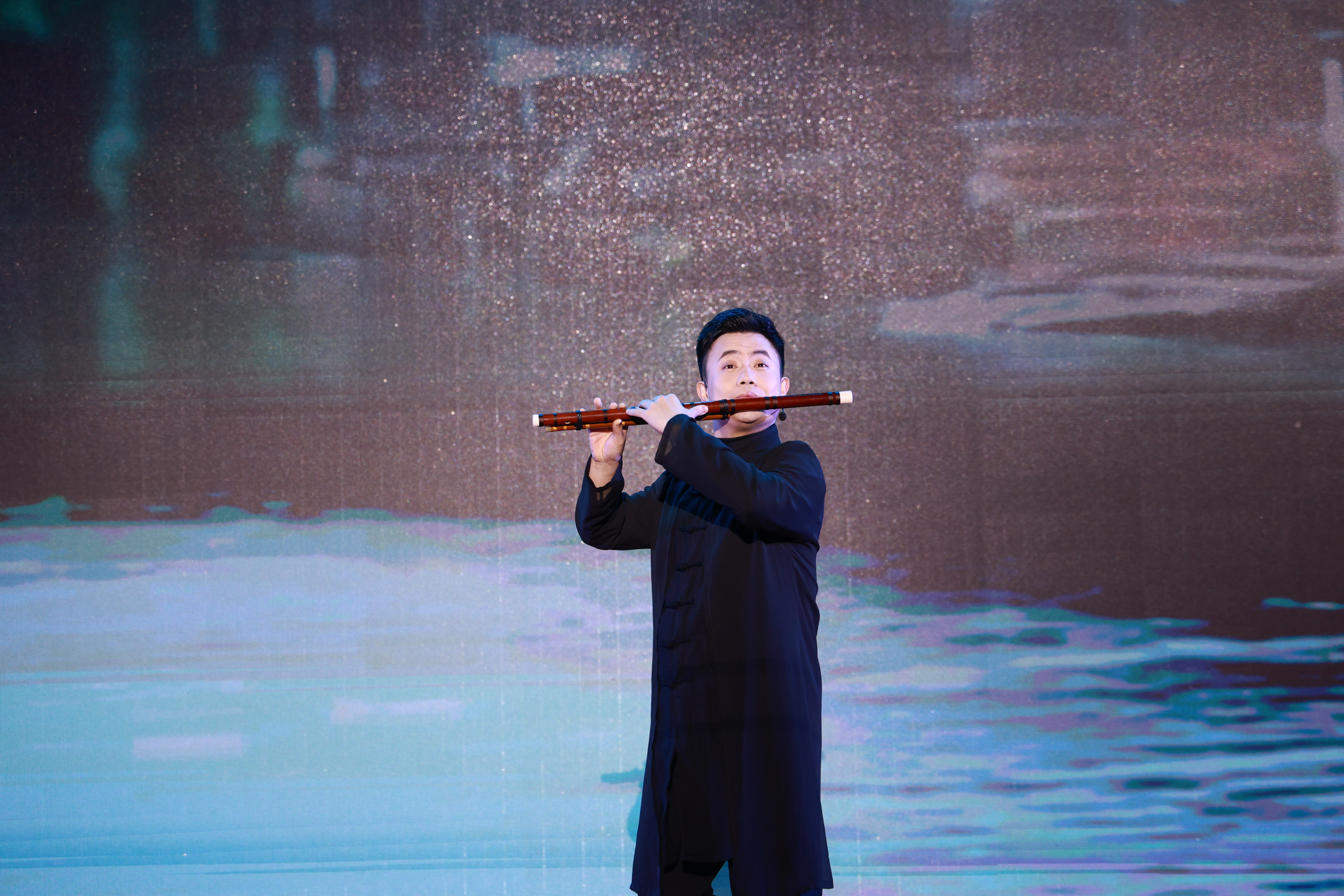 竹笛悠悠、空灵悠远,艺术教育中心教师马述谏用一曲《水乡船歌》勾勒出烟雨江南的灵秀画卷。诗朗诵《天赐情怀》讴歌了开云电子人薪火相传的人文精神与赤子情怀。由音乐学院教师卞浩雄、卓琳倾情演唱的《领航》,以磅礴气势汇聚出开创未来的奋进力量。