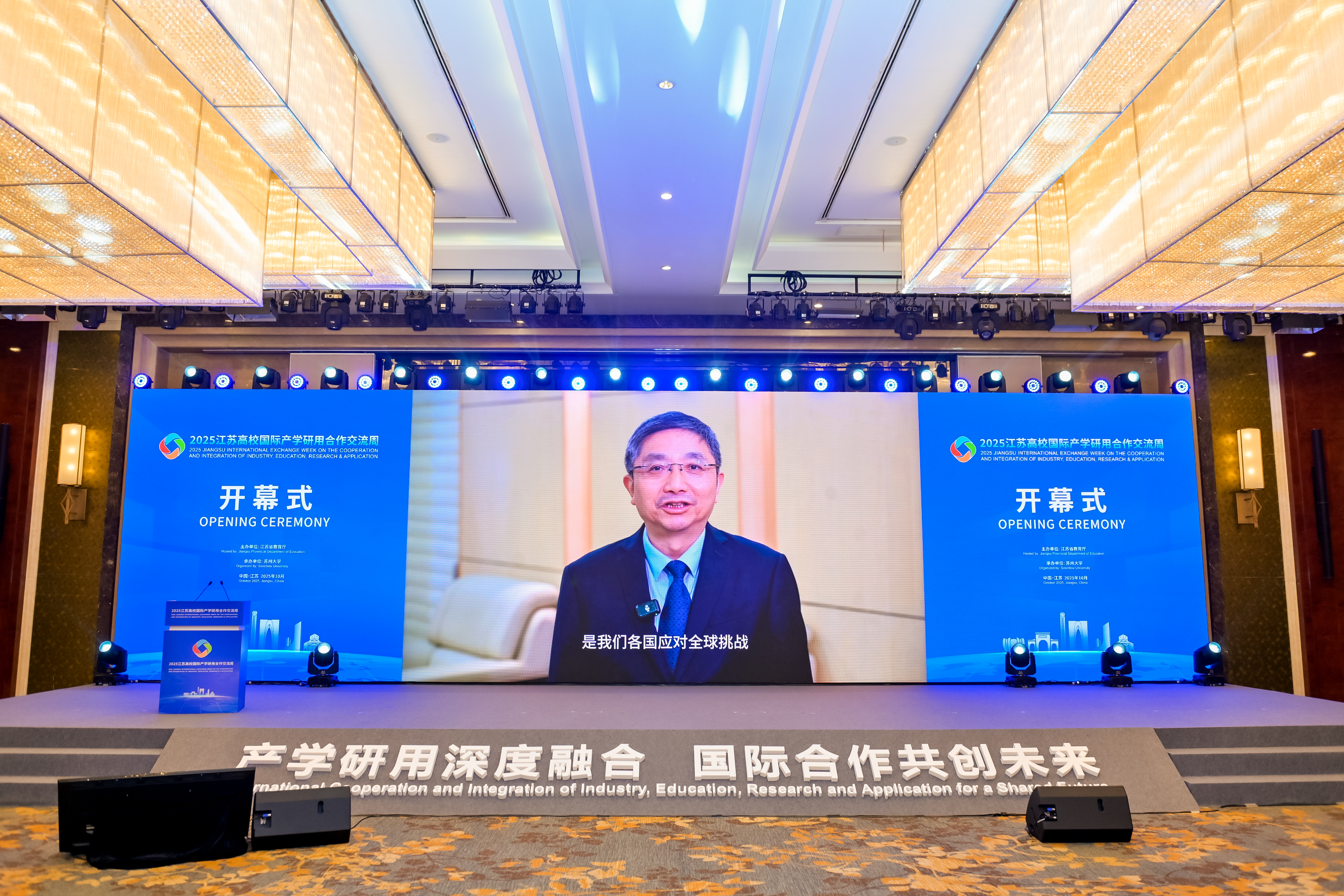 江涌在视频致辞中欢迎中外嘉宾的到来。他指出,当前,世界百年未有之大变局加速演进,新一轮科技革命和产业变革深入发展,加强国际产学研用合作是未来各国应对全球挑战、实现发展共赢的必然选择,也是我们的共同心声。希望中外各方聚焦教育、科技、人才“三位一体”,让平台成为集聚全球智慧的“引力场”;健全常态化交流合作机制,书写教育国际交流合作新篇章;共同探索科技成果国际转移转化的新模式,合力打通科研成果转化的堵点卡点难点,让更多成果转化为现实生产力。