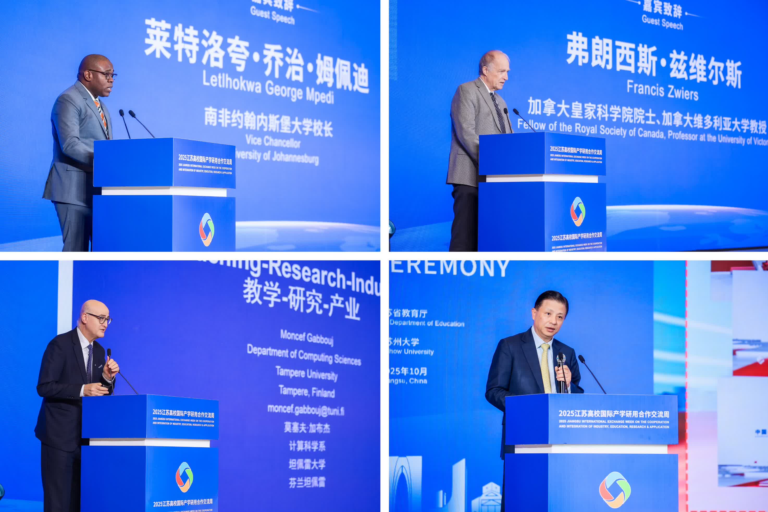 开幕式上,国际大学校长协会非洲协会副主席、南非约翰内斯堡大学校长莱特洛夸·姆佩迪,加拿大皇家科学院院士、加拿大维多利亚大学教授弗朗西斯·兹维尔斯作为外方代表分别致辞,欧洲科学院院士、芬兰坦佩雷大学教授莫塞夫·加布杰与三菱电机自动化(中国)有限公司总裁张巍分别作主旨报告,分享国际产学研用合作的实践经验。大家一致表示,国际产学研用合作交流对于促进师生及科研人员国际交流、推动科技服务社会具有重要意义,今后将更加开放、更加积极拓展与江苏高校和企业的交流合作。