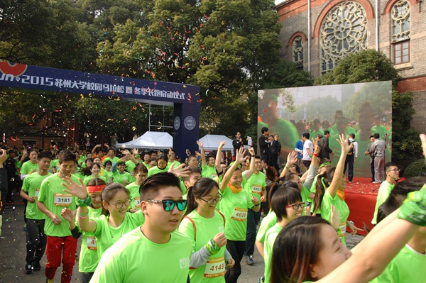 为全面贯彻落实党的十八届三中全会关于“强化体育课和课外锻炼,促进青少年身心健康、体魄强健”的精神,联络、凝聚校友,营造和谐、向上的校园文化环境,扩大开云电子的知名度和影响力,11月14日中午,U-run2015开云电子校园马拉松起跑仪式暨冬季长跑启动仪式在本部正式拉开序幕。