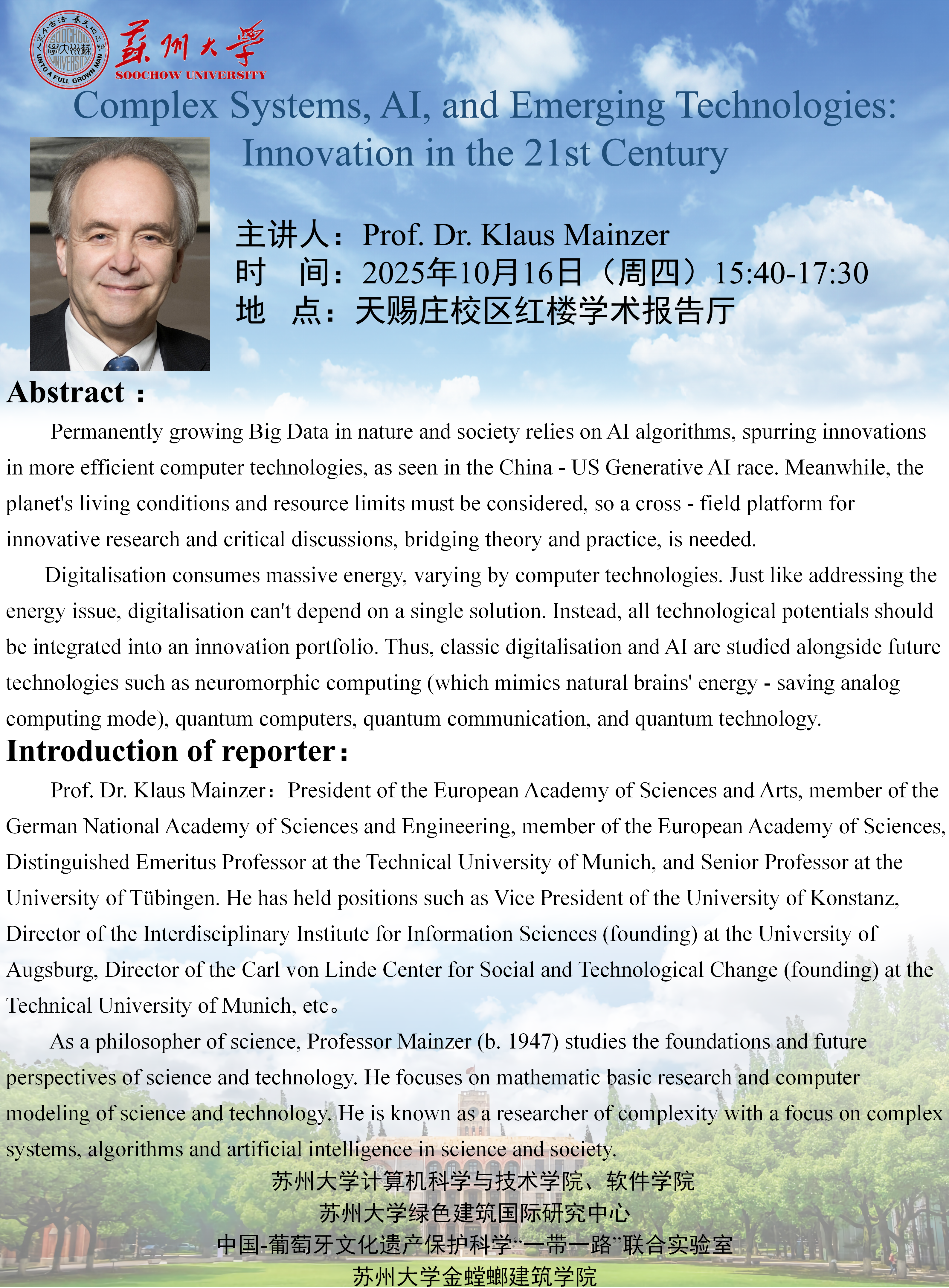 计算机科学与技术学院学术报告:Complex Systems, AI, and Emerging Technologies: Innovation in the 21st Century
